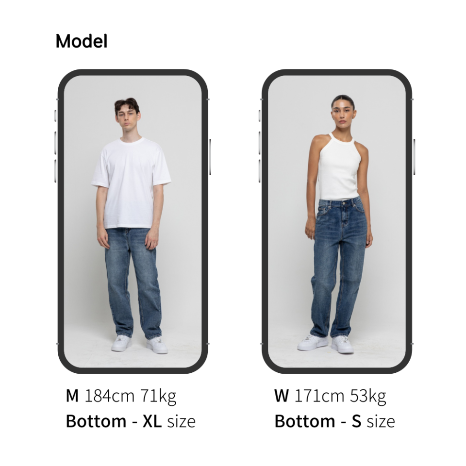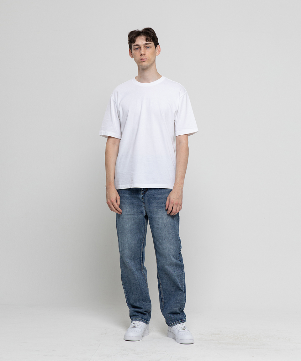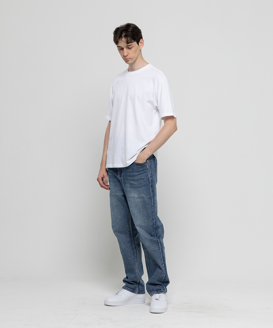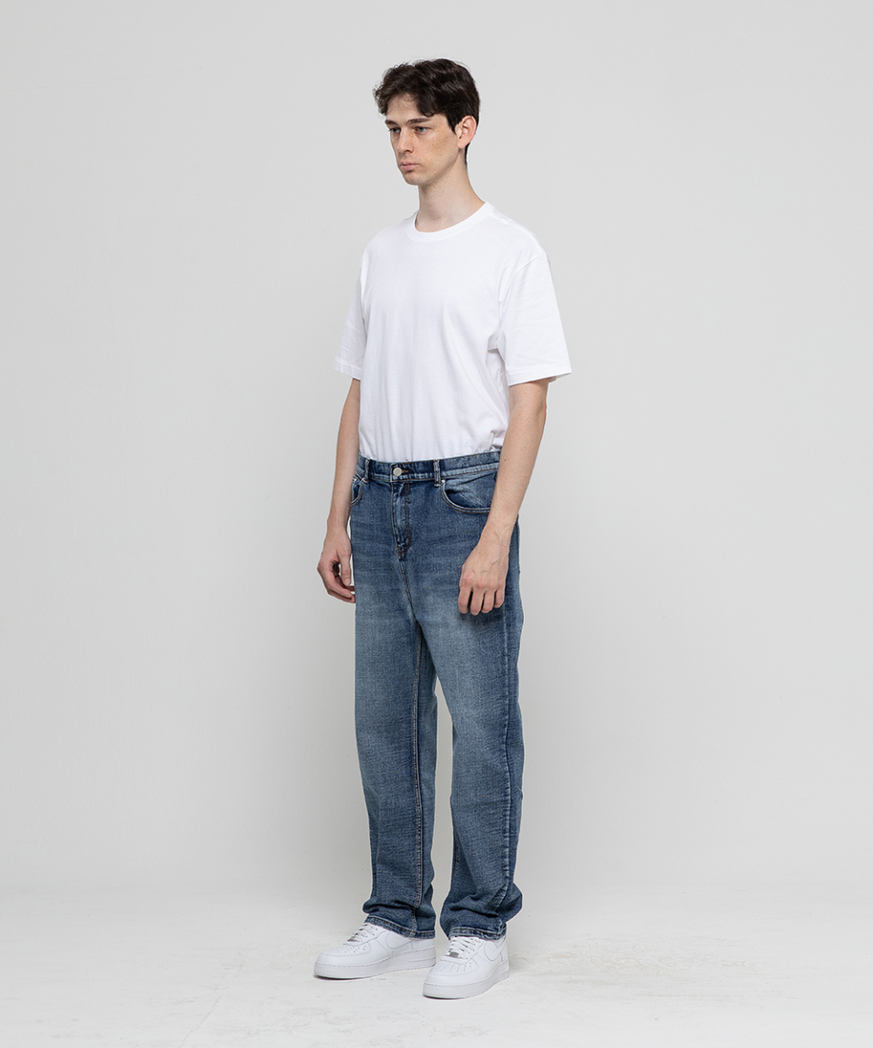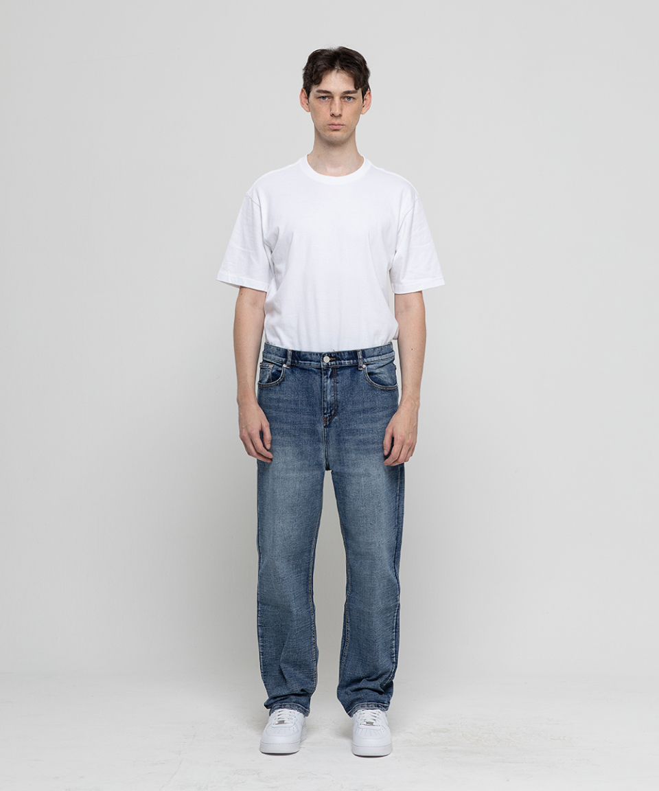 내추럴 워싱 세미 와이드 데님 팬츠 [연청]