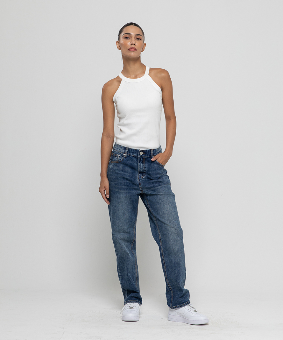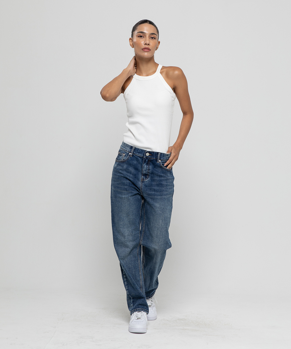 내추럴 워싱 세미 와이드 데님 팬츠 [중청]