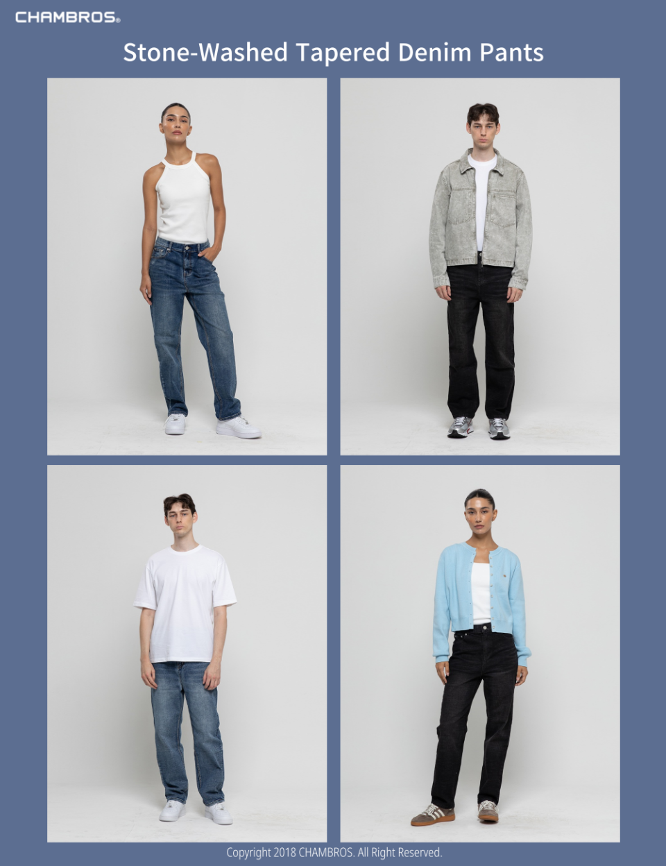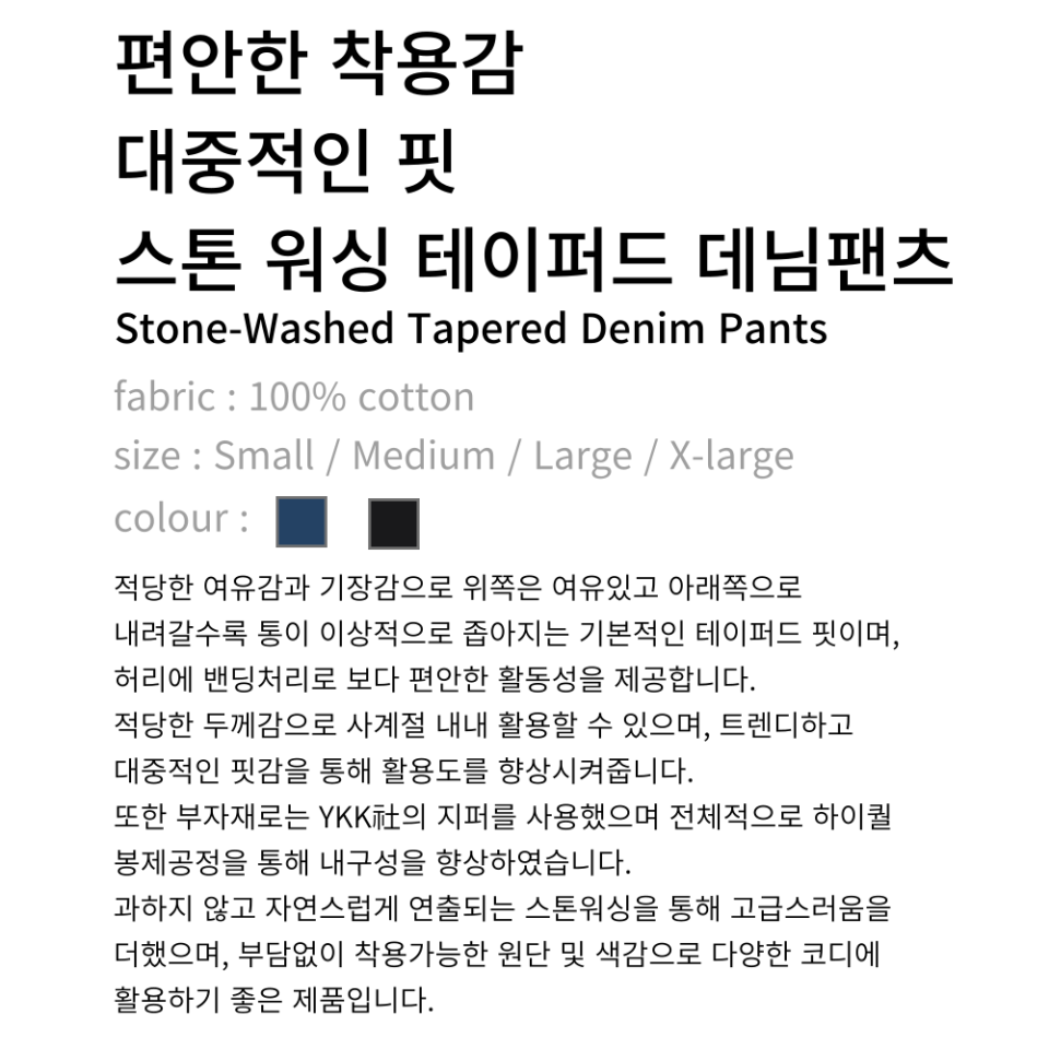 스톤 워싱 테이퍼드 데님팬츠[딥블루]