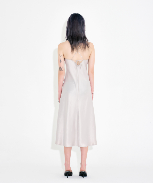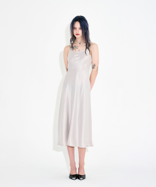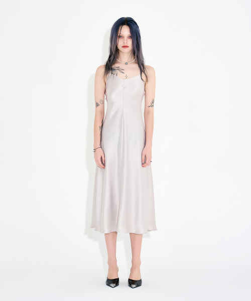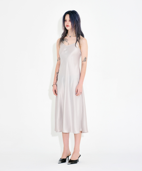 바이어스컷 아세테이트 드리프트 슬릿 드레스 아이보리