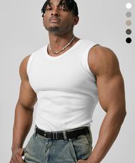 시그니처 머슬핏 립브드 슬리브리스_5color