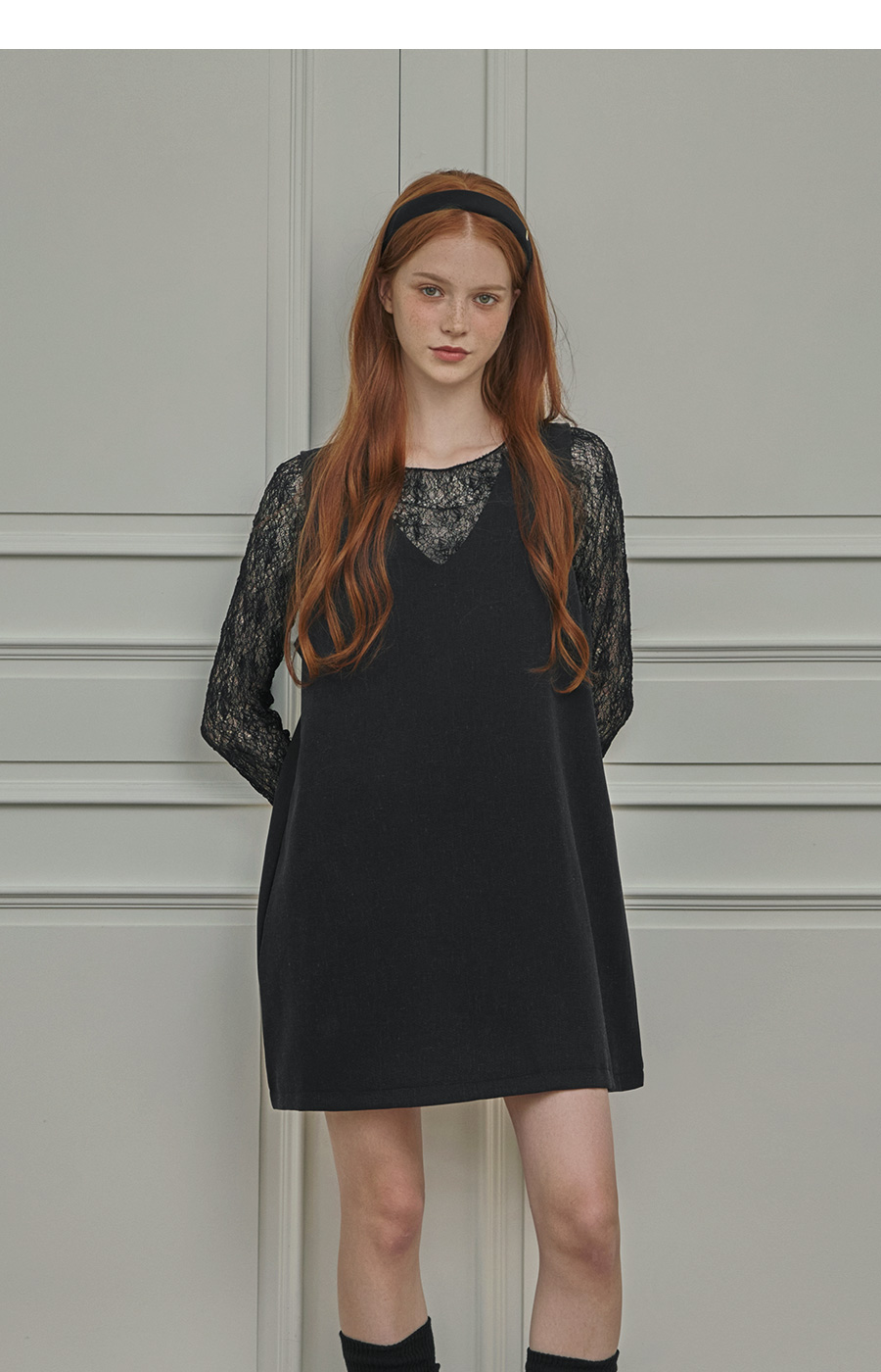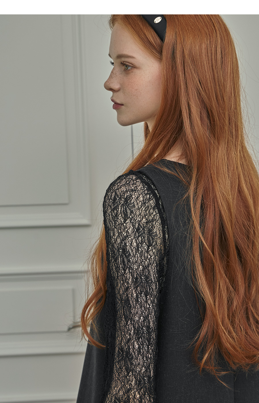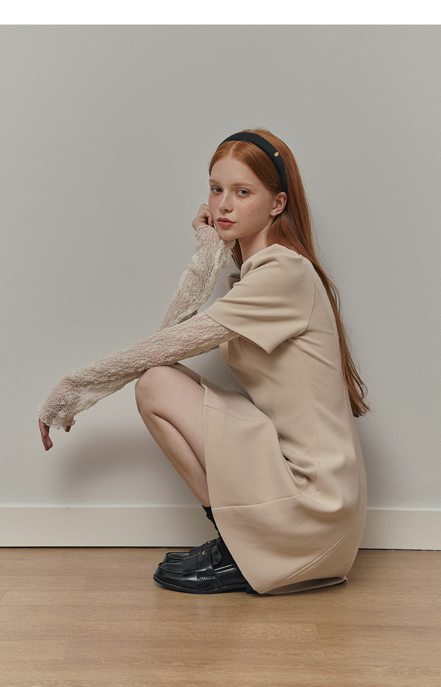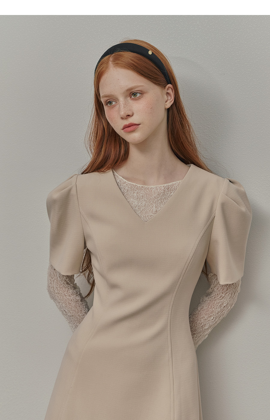 보트넥라인과 롱 슬리브로 여리한 무드를 더해줍니다