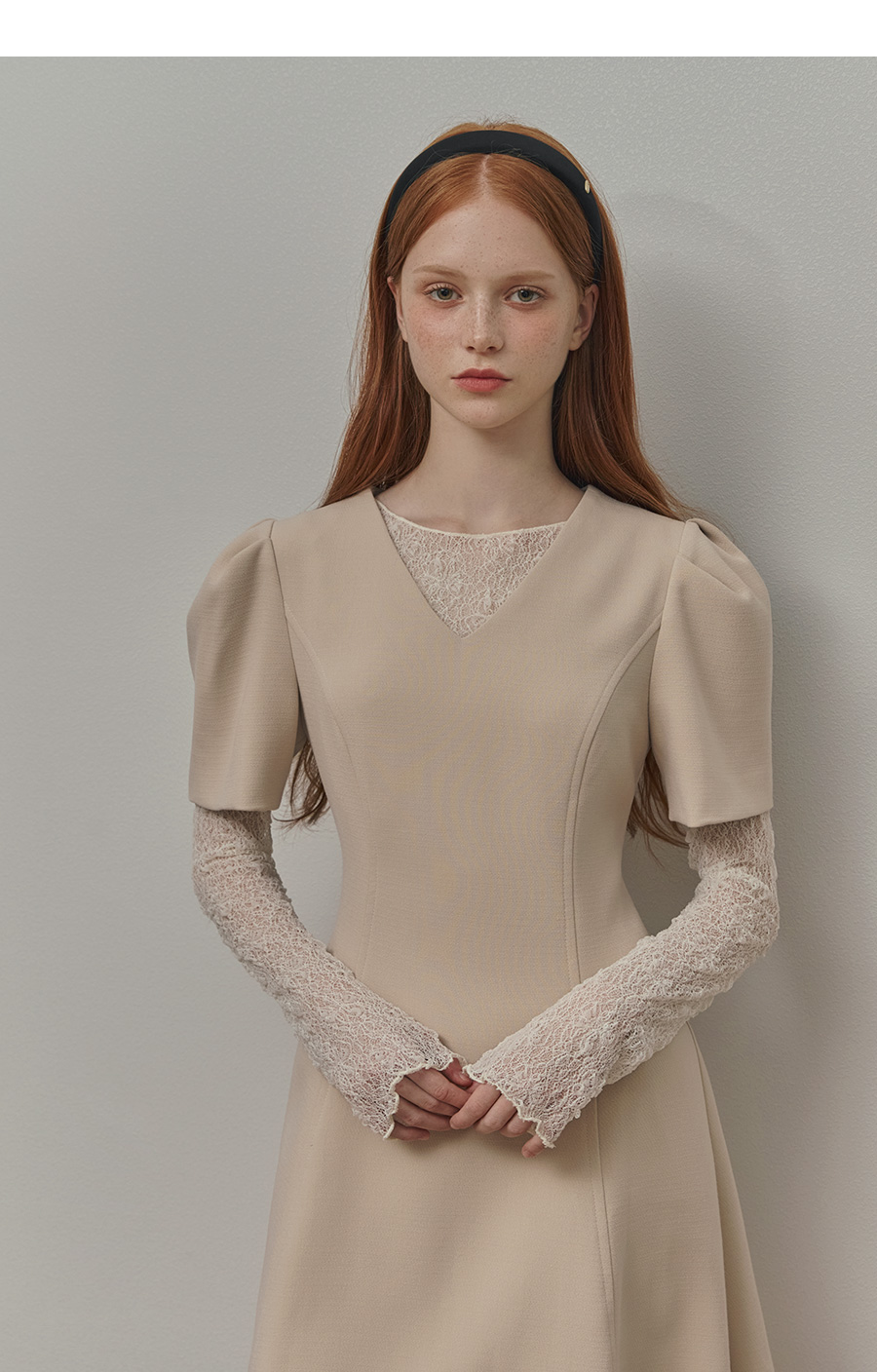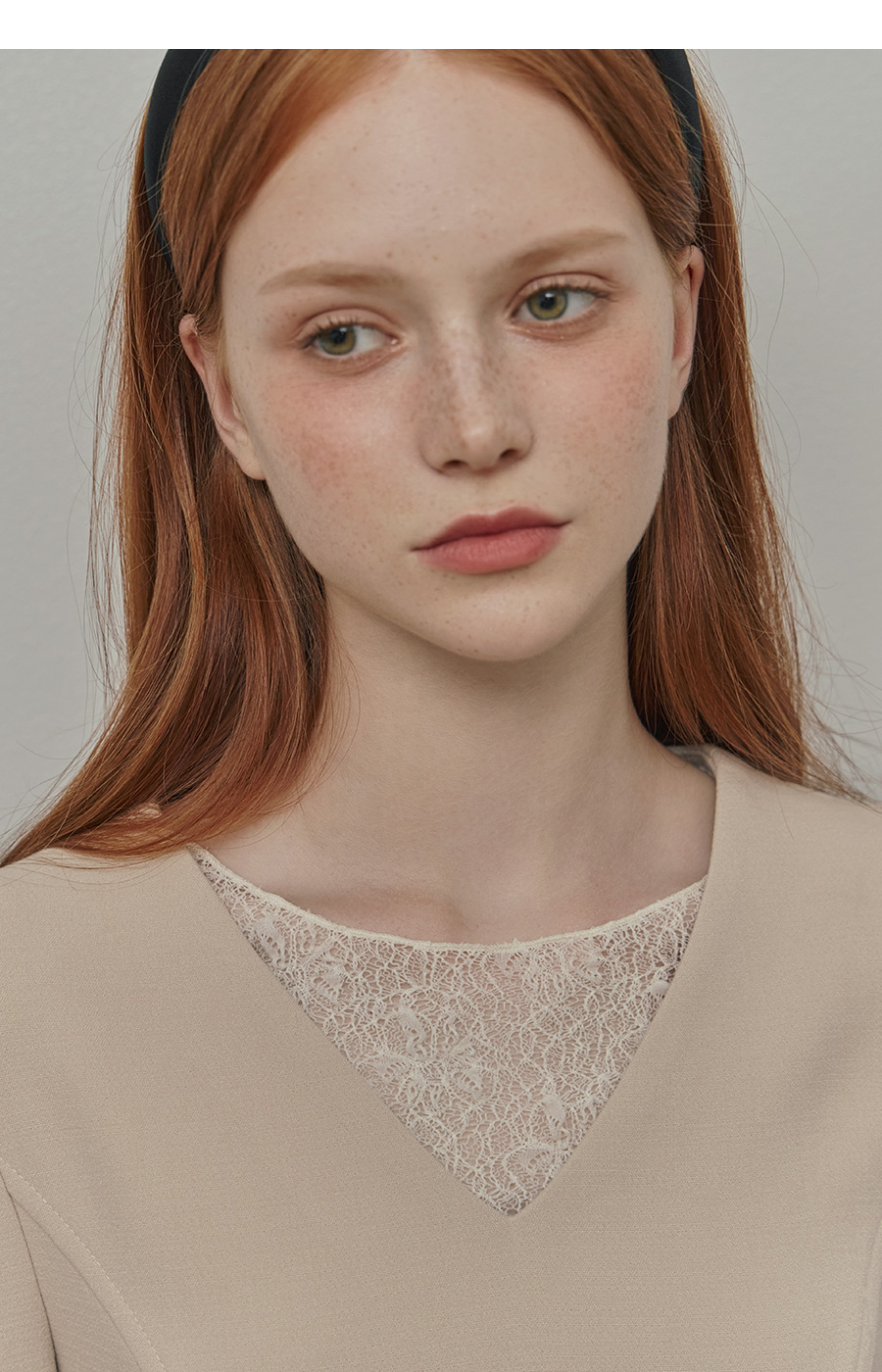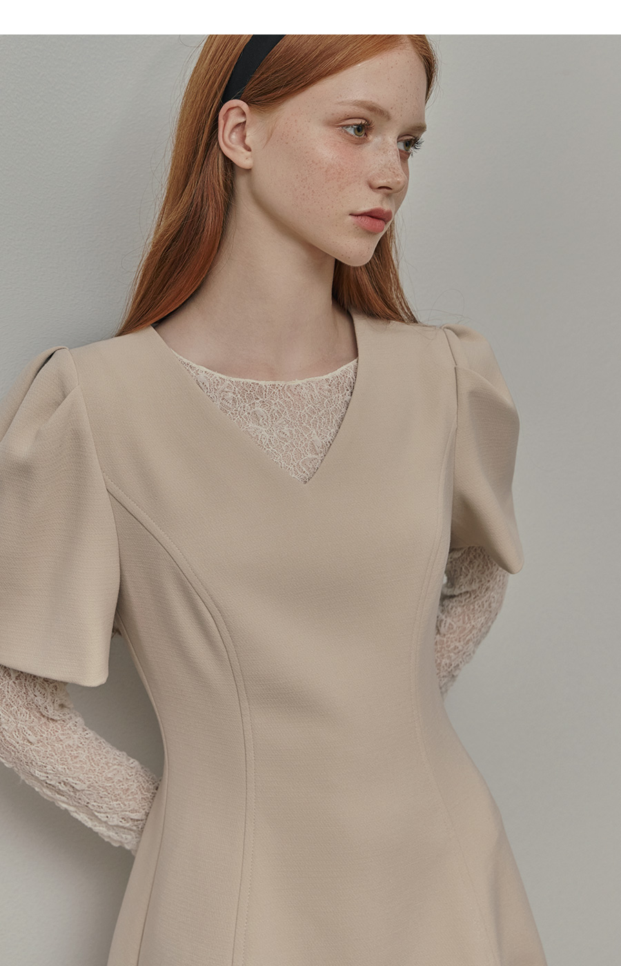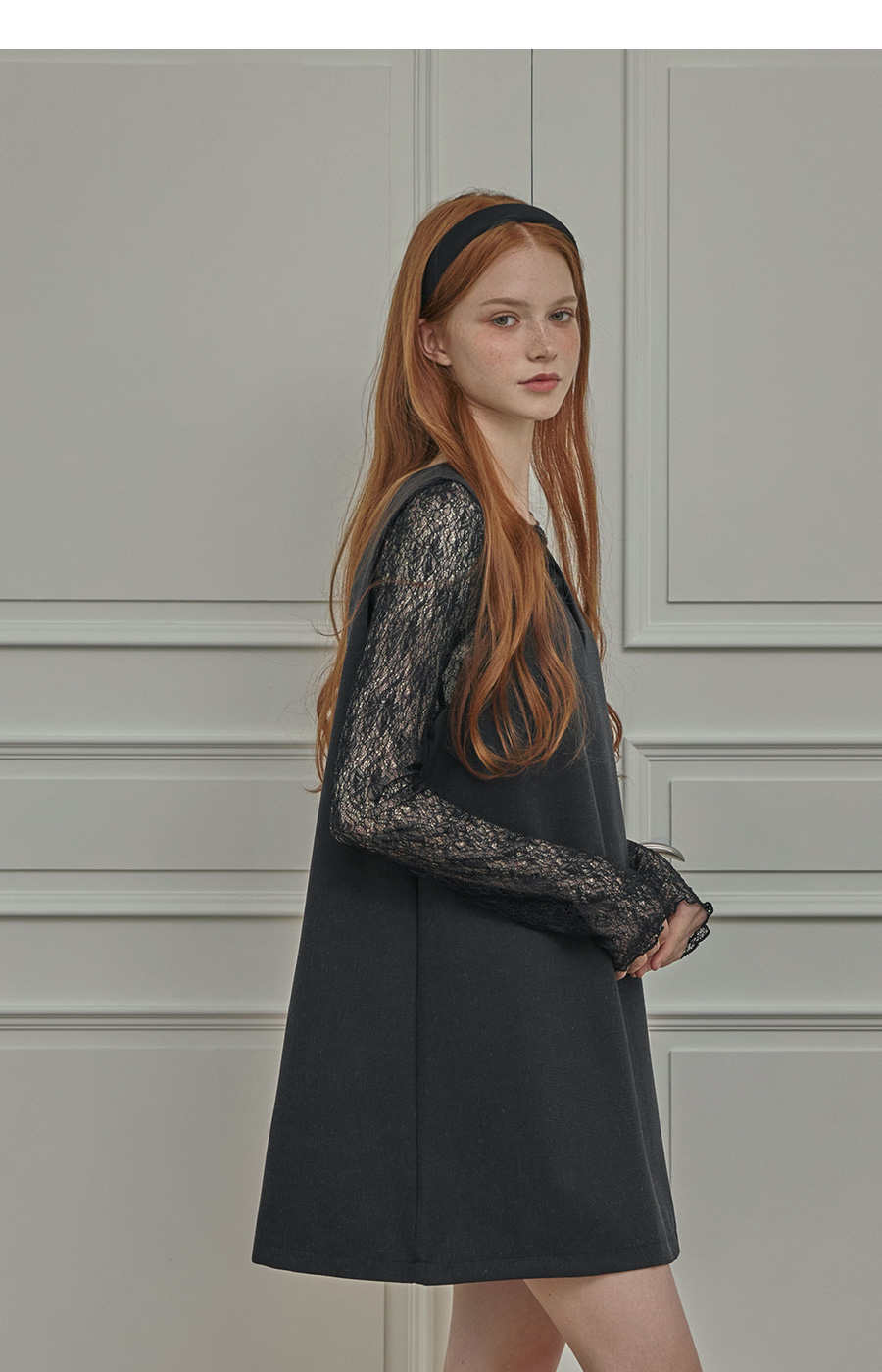 보트넥라인과 롱 슬리브로 여리한 무드를 더해줍니다