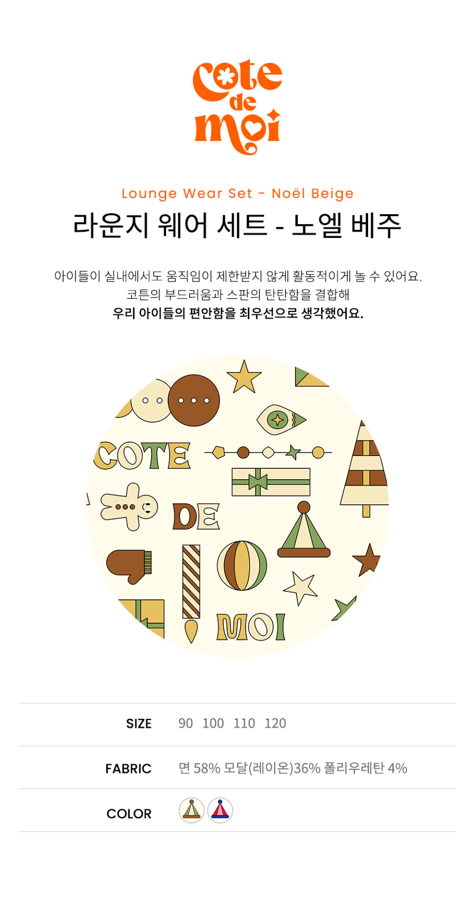 꼬떼드무어(COTE DE MOI)는 '내 옆에'라는 뜻을 담고 있습니다. 아이들과의 모든 순간을 함께하고자 하는 마음을 담아 디자인한 브랜드입니다.