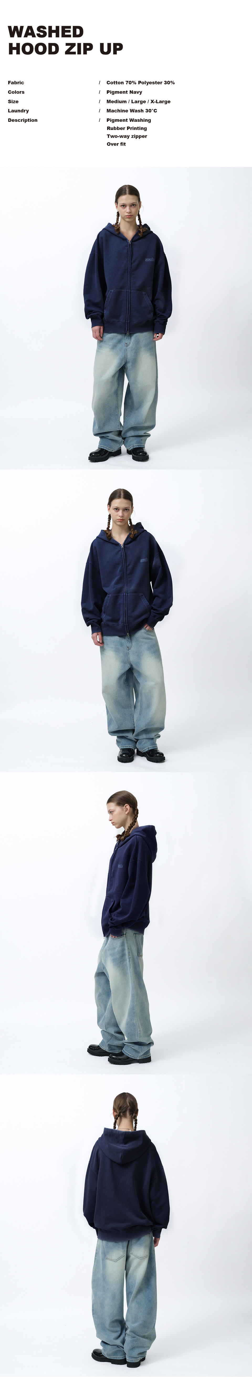 WASHED HOOD ZIP UP [PIGMENT NAVY]