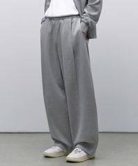 더블 니트 원 턱 와이드 라운지 스웨트 팬츠 [미디엄 그레이]