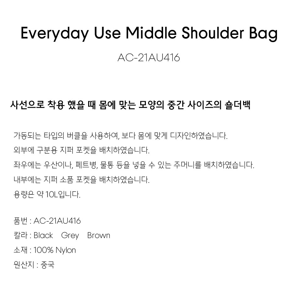 에브리데이 유즈 미들 숄더백 - 블랙 / AC-21AU416RBK
