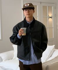 [유튜버 PICK] 비건 레더 워크 자켓_블랙
