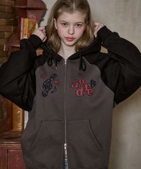 [2-WAY] 멜로디 패치 레글런 후드 집업 챠콜