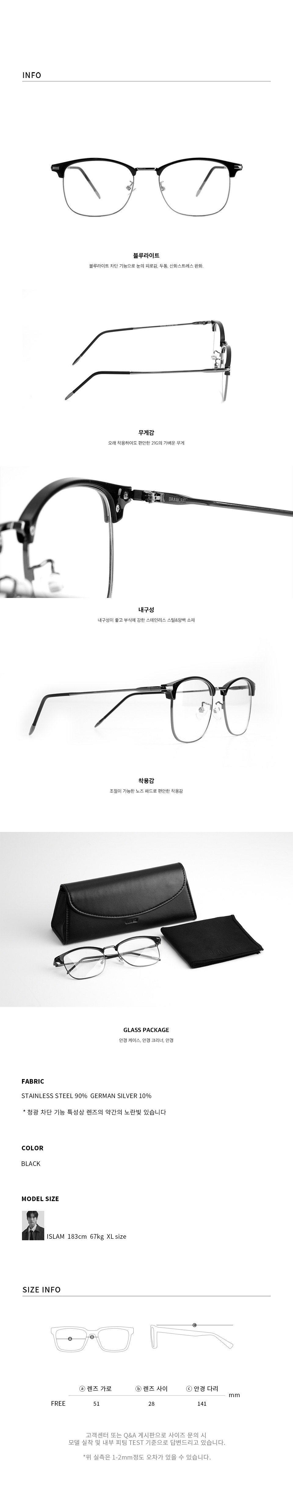 블루라이트차단 안경테 사각뿔테 투명 블랙 4620-BL