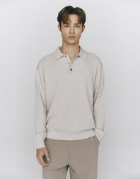 [적립금 5%] 커스텀 슬림핏 롱 슬리브 메시 폴로 - 블랙