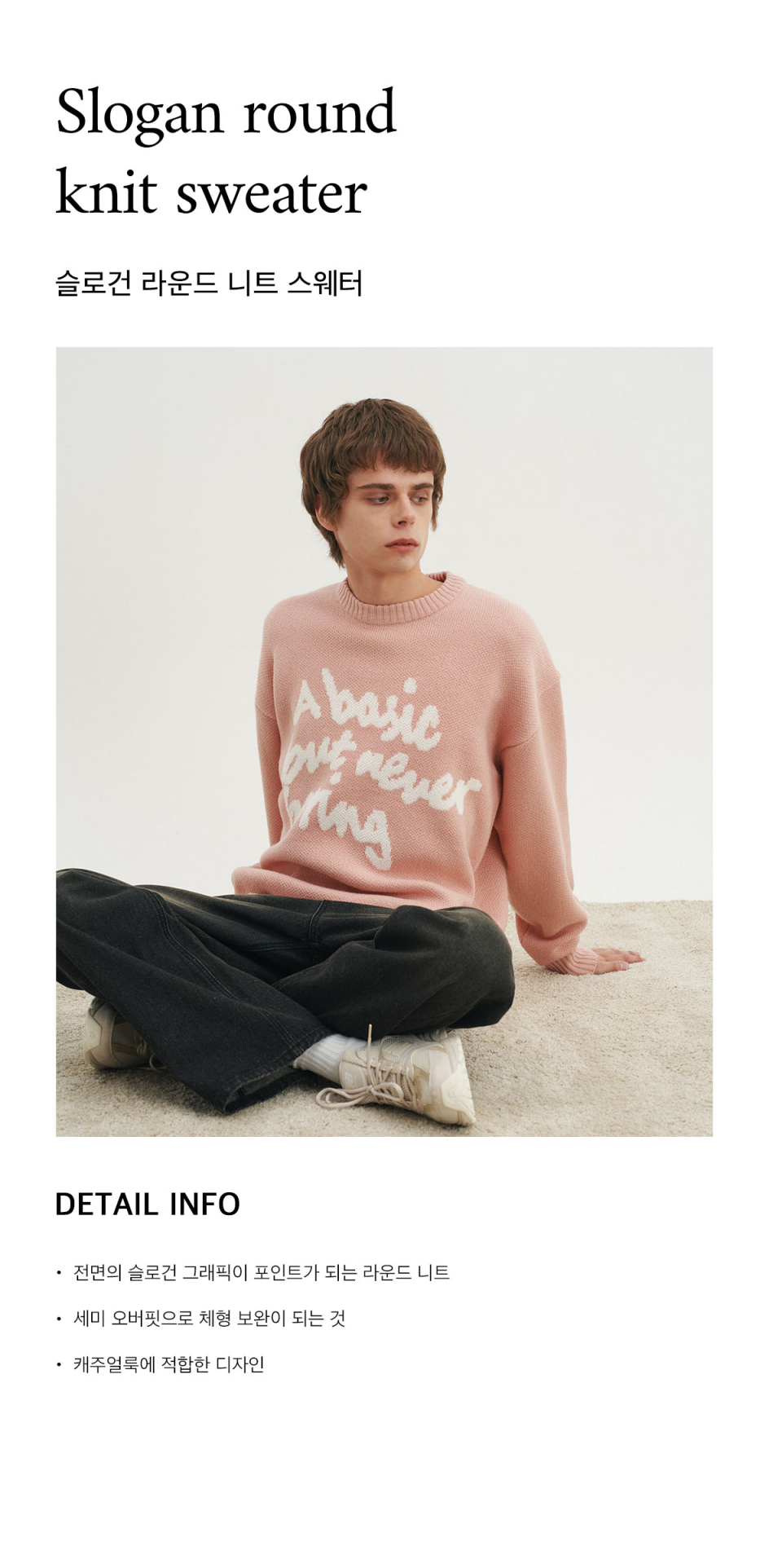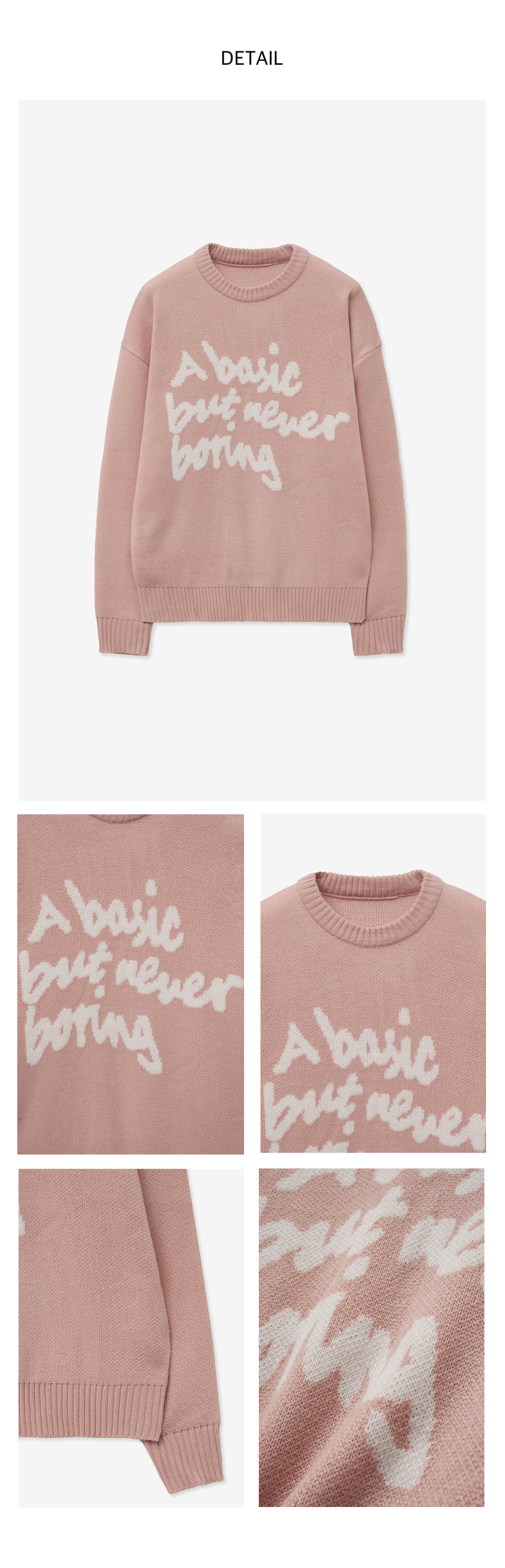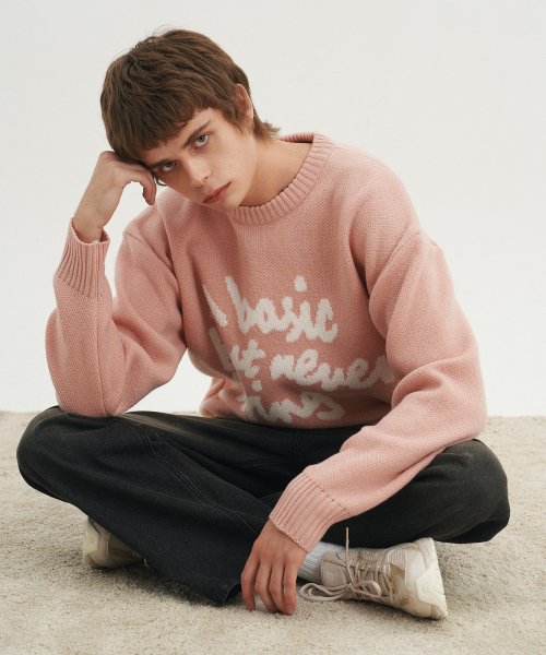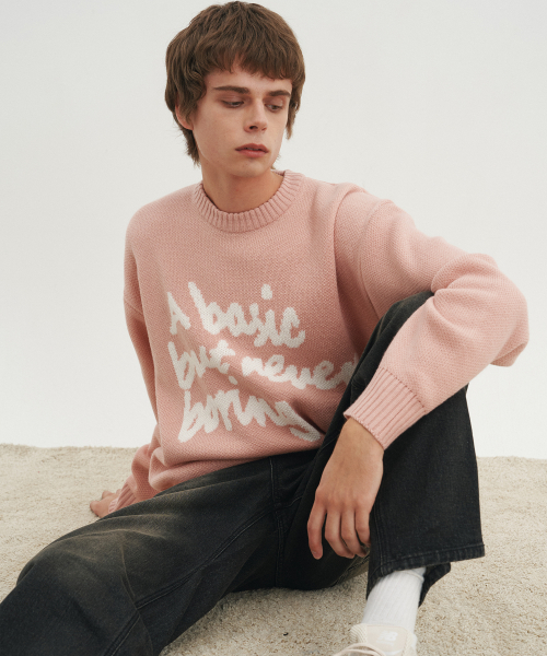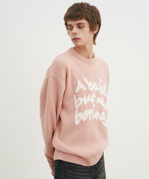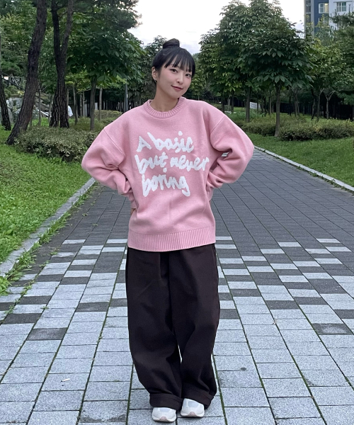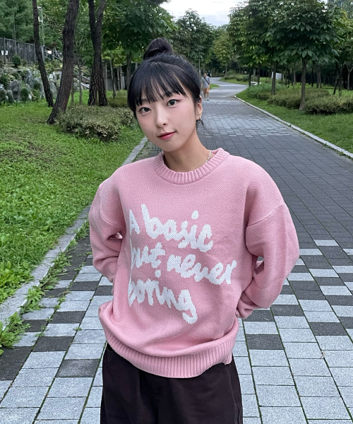 슬로건 라운드 니트 스웨터_핑크