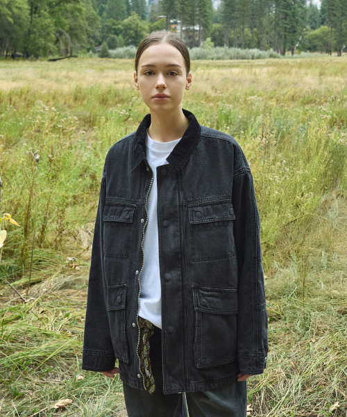데님 트러커 필드 퀼팅 자켓 블랙 FDJ102