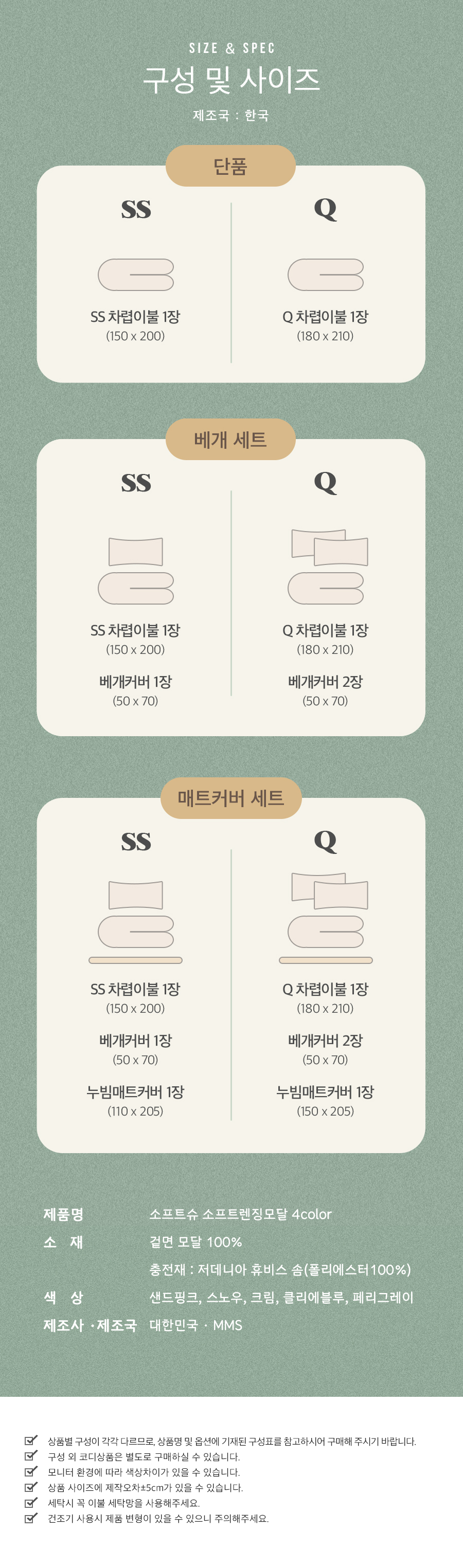 소프트슈 4COLOR 소프트 렌징모달 차렵이불세트