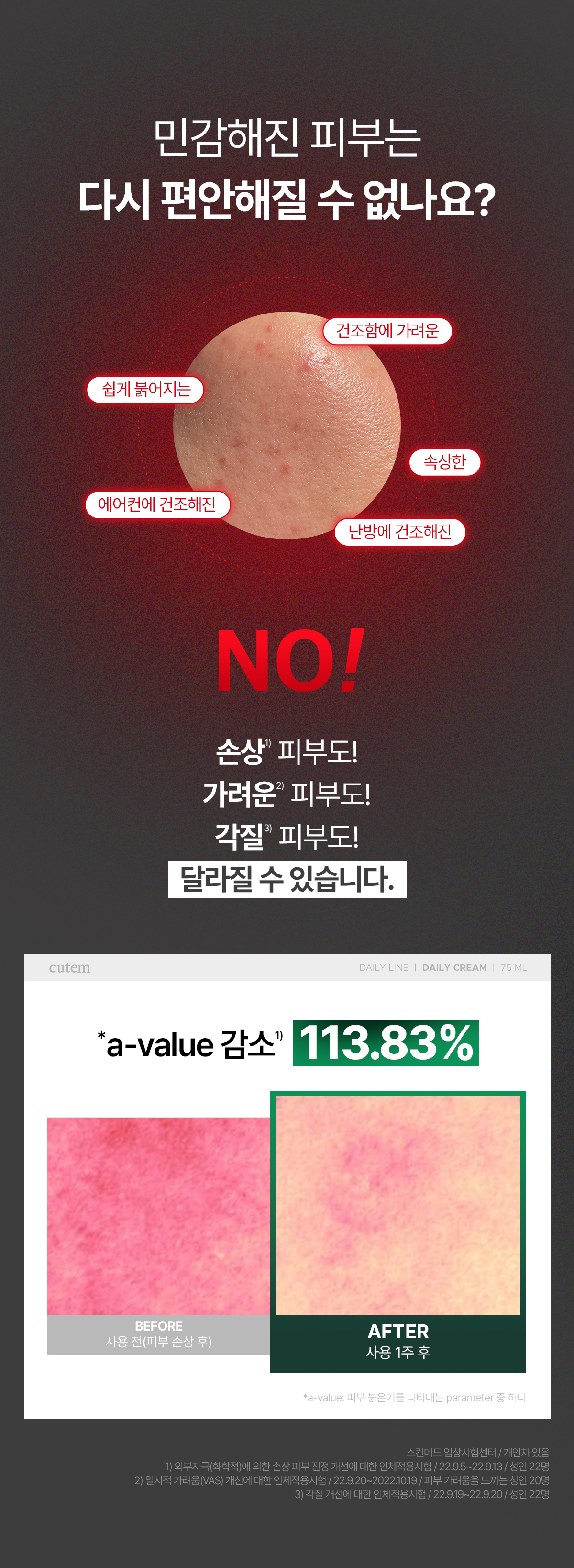 큐템(CUTEM)은 피부 본연의 모습을 지향하는 민감성 피부 전문 더마 코스메틱 브랜드입니다.