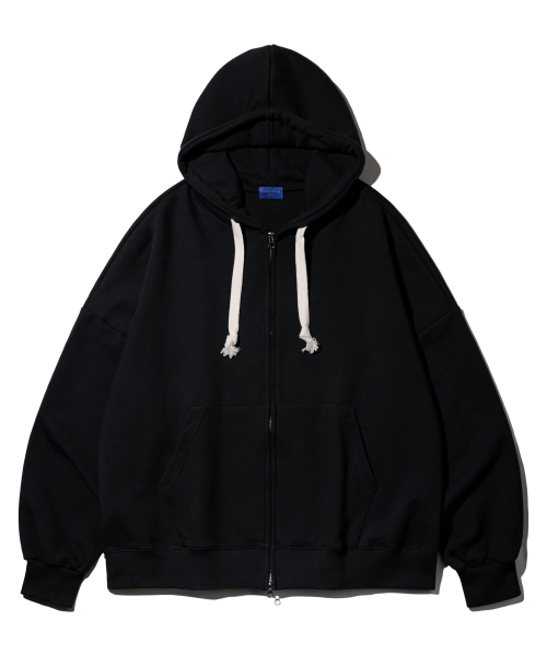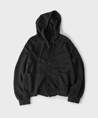 헤비코튼 오버핏 후드 버튼 집업 [블랙]
