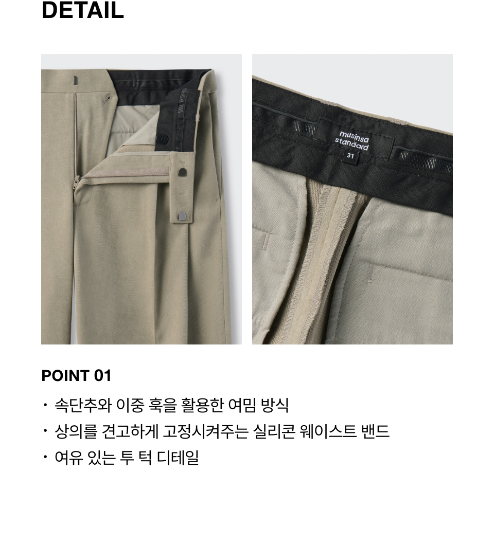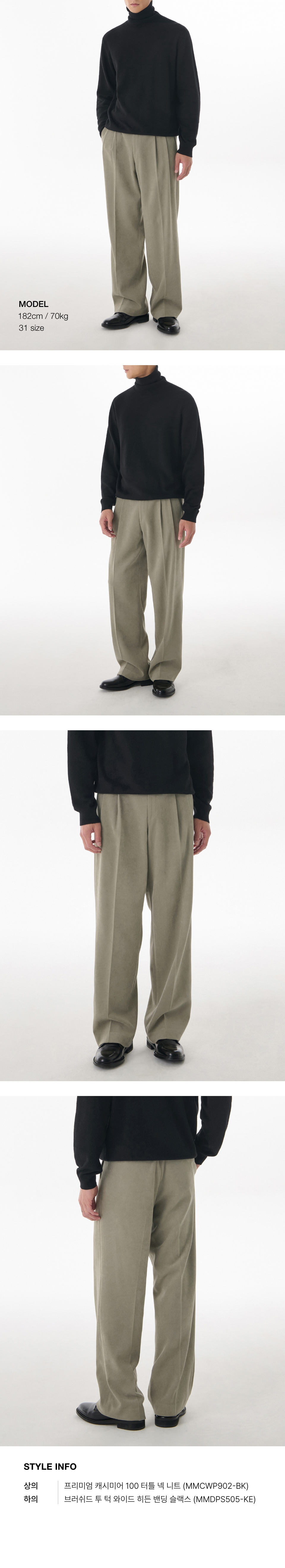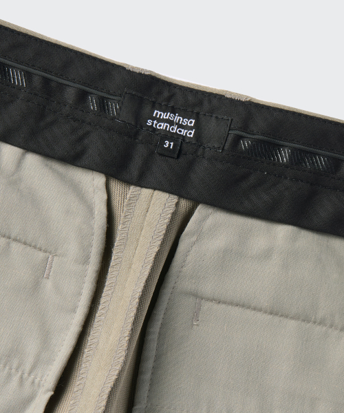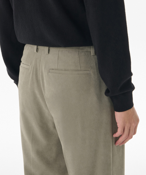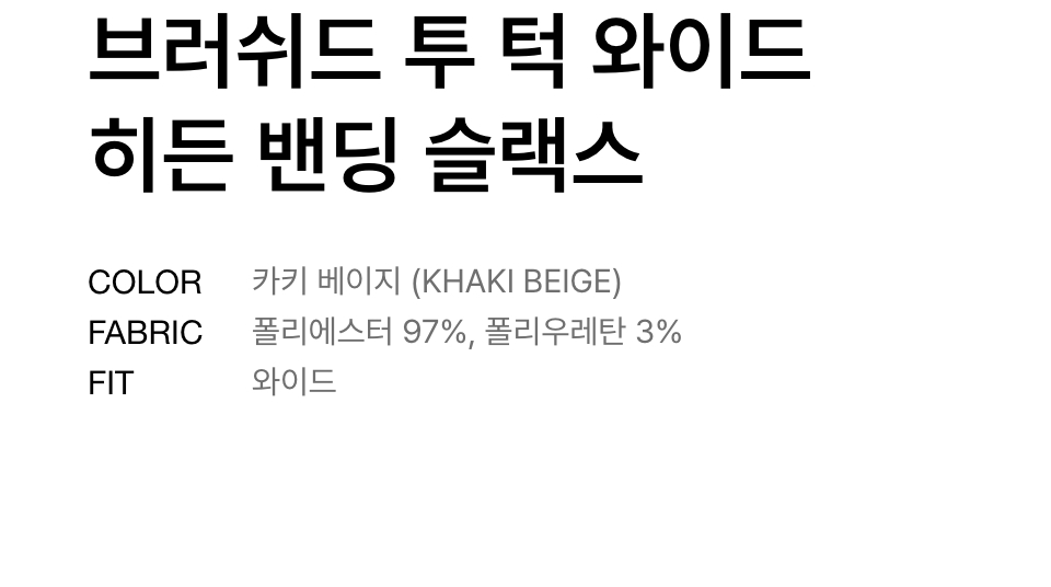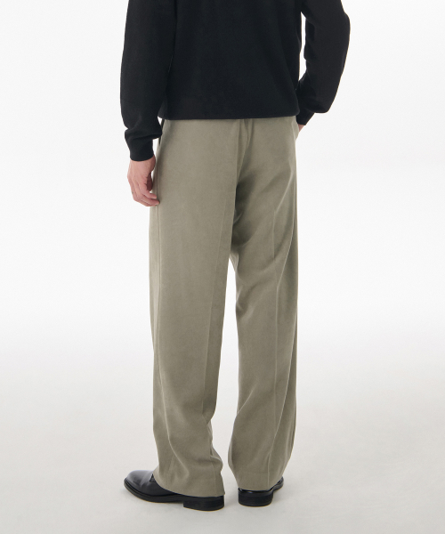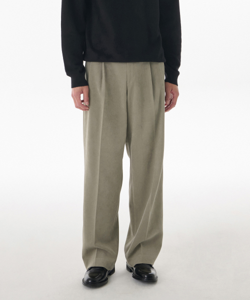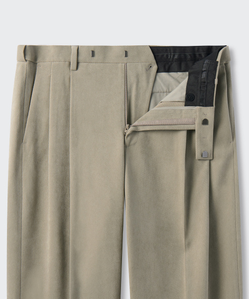 브러쉬드 투 턱 와이드 히든 밴딩 슬랙스 [카키 베이지]