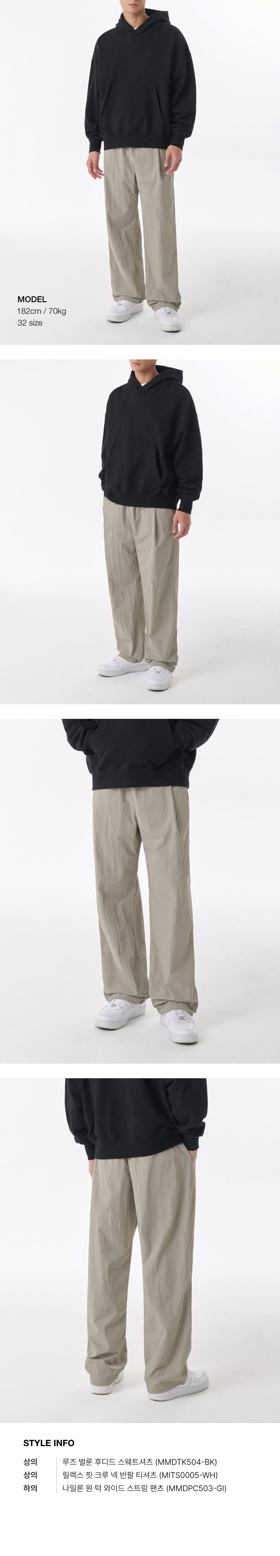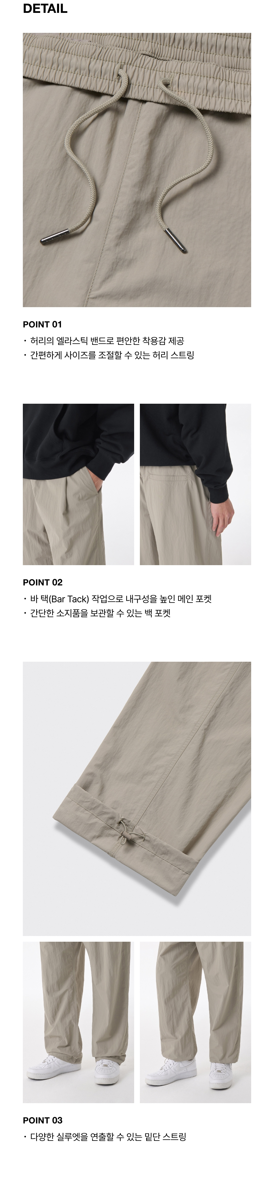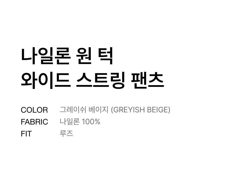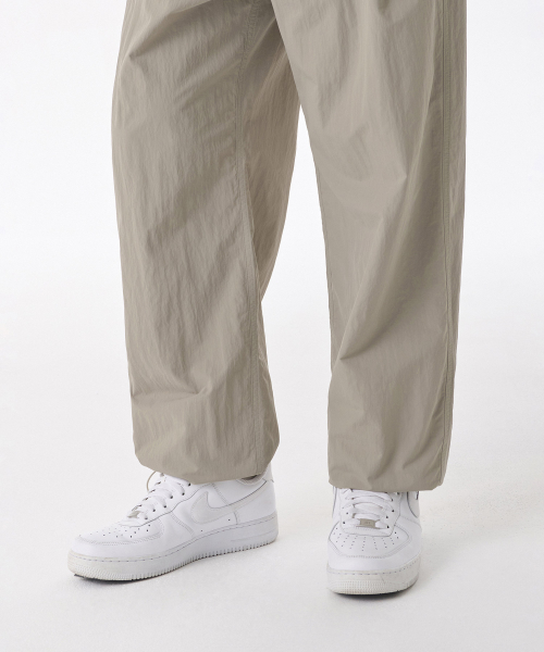 나일론 원 턱 와이드 스트링 팬츠 [그레이쉬 베이지]