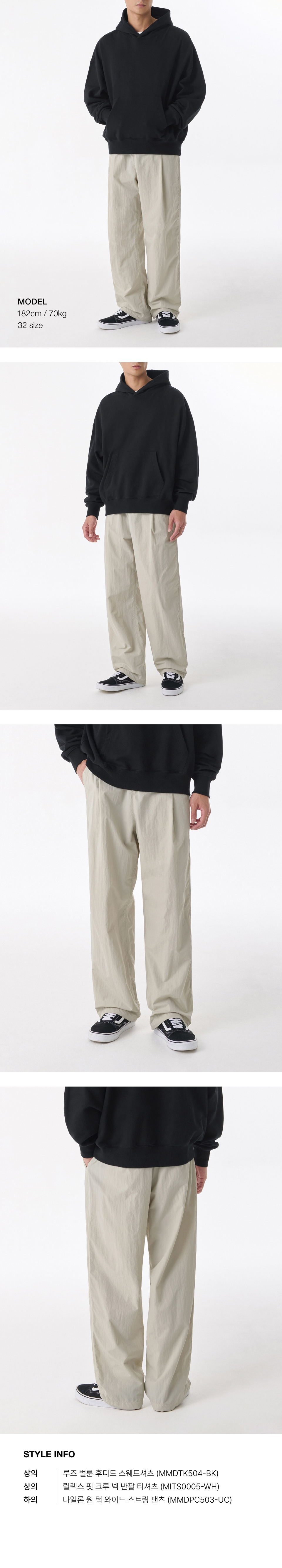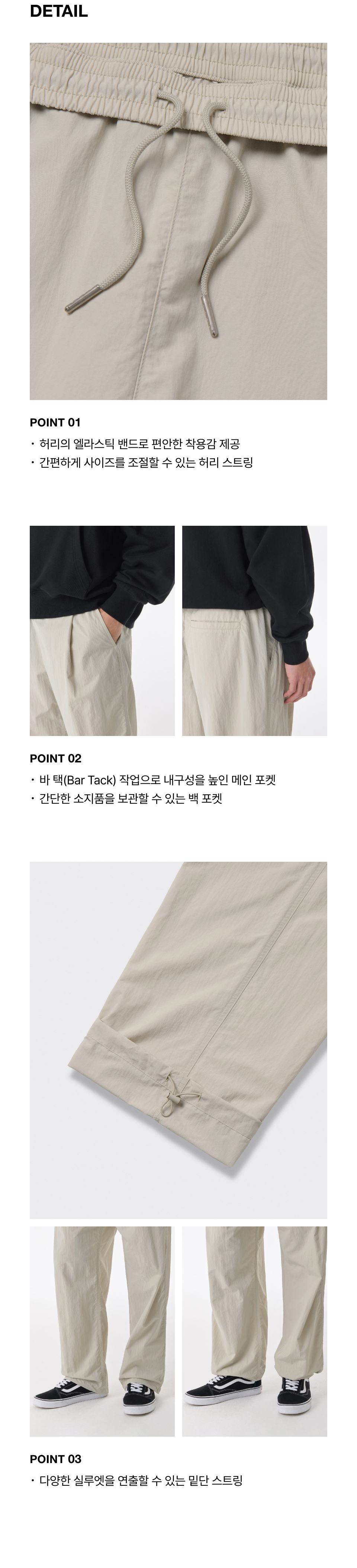 나일론 원 턱 와이드 스트링 팬츠 [더스티 크림]
