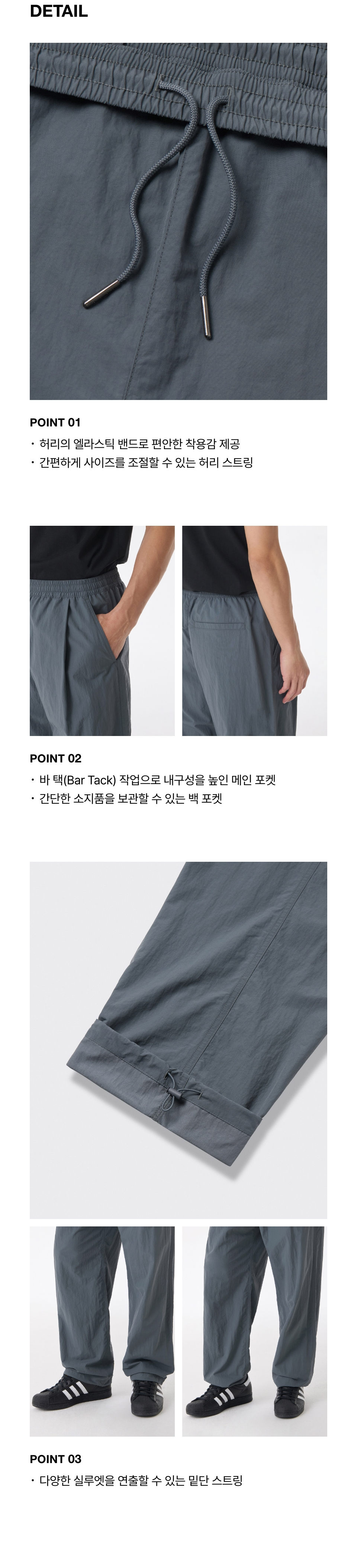 나일론 원 턱 와이드 스트링 팬츠 [다크 그레이]