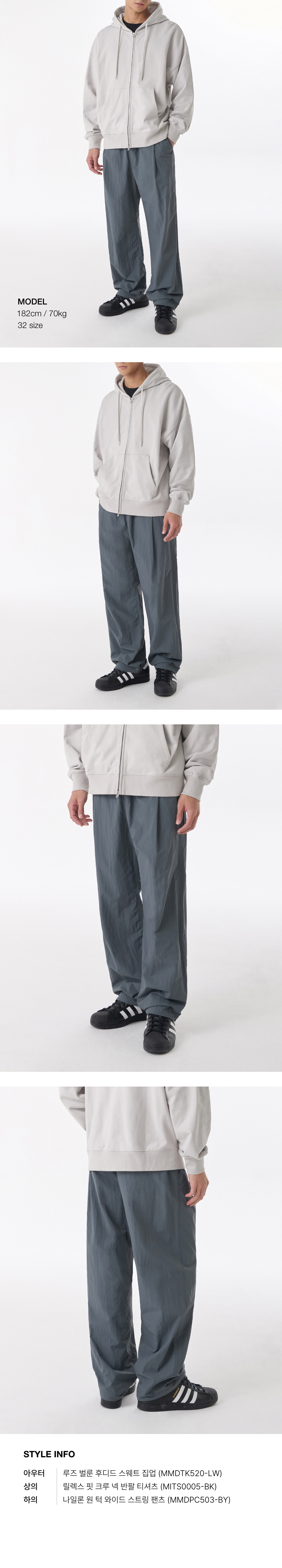 나일론 원 턱 와이드 스트링 팬츠 [블루 그레이]