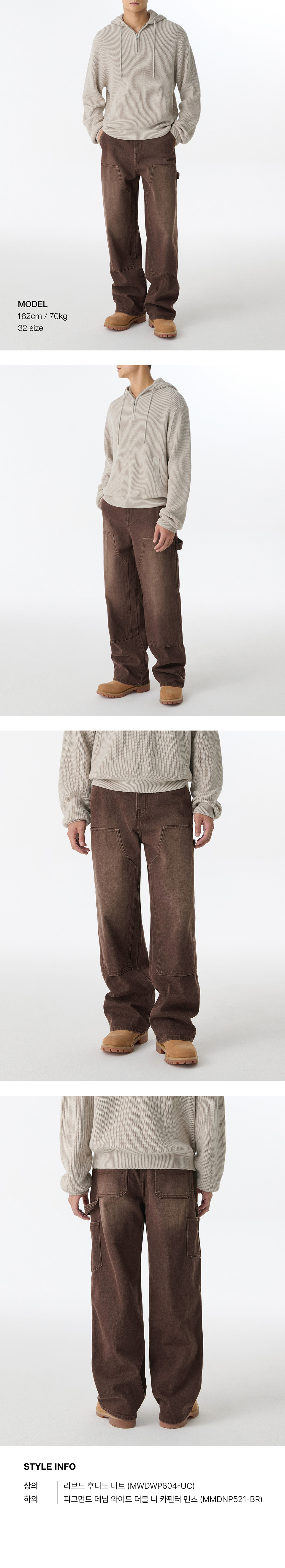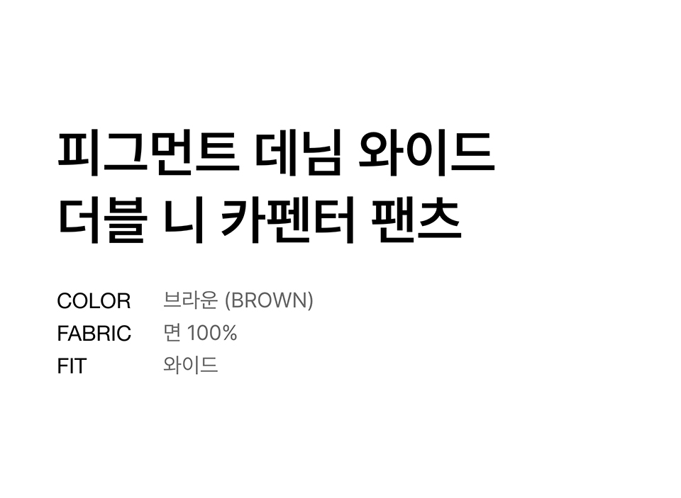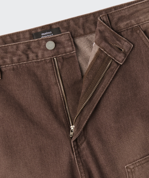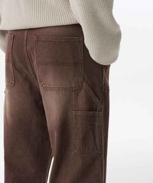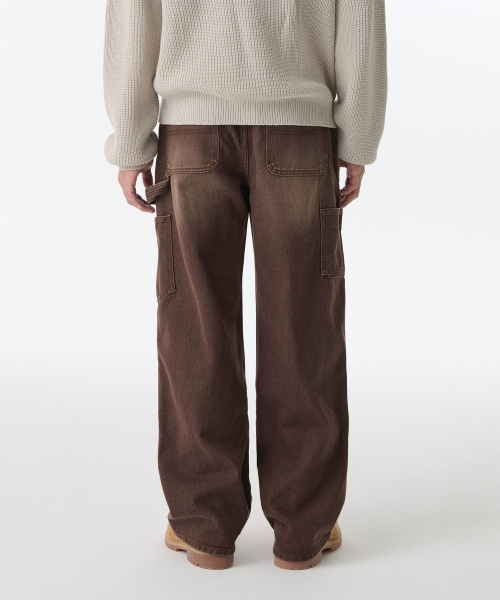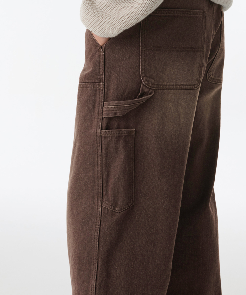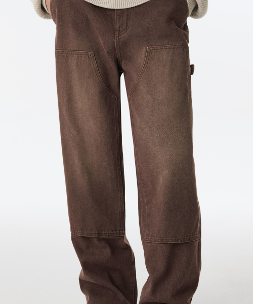 피그먼트 데님 와이드 더블 니 카펜터 팬츠 [브라운]