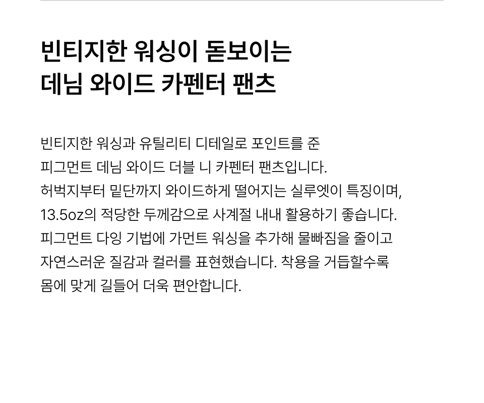 피그먼트 데님 와이드 더블 니 카펜터 팬츠 [베이지]