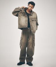 피그먼트 엑스트라 와이드 카고 데님 팬츠 [카키]