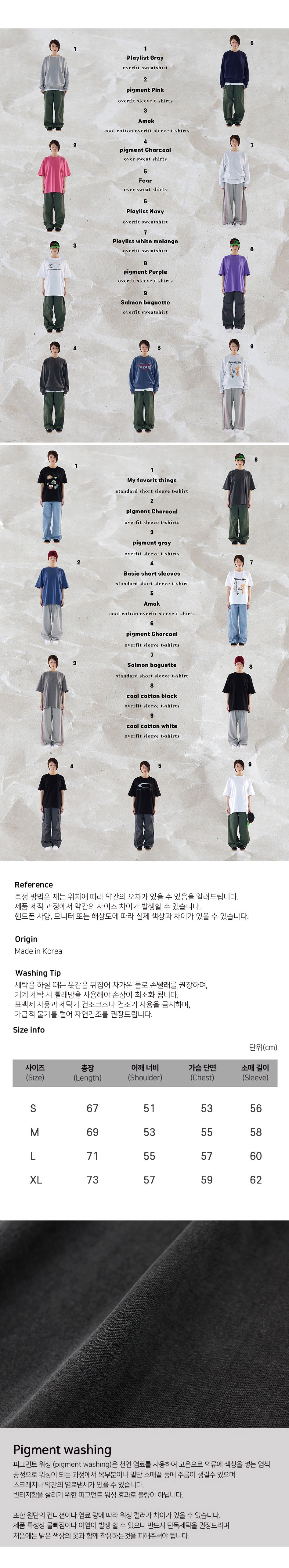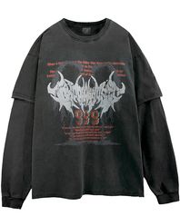 DTG 메텔 오버핏 피그먼트 레이어드 티셔츠 차콜