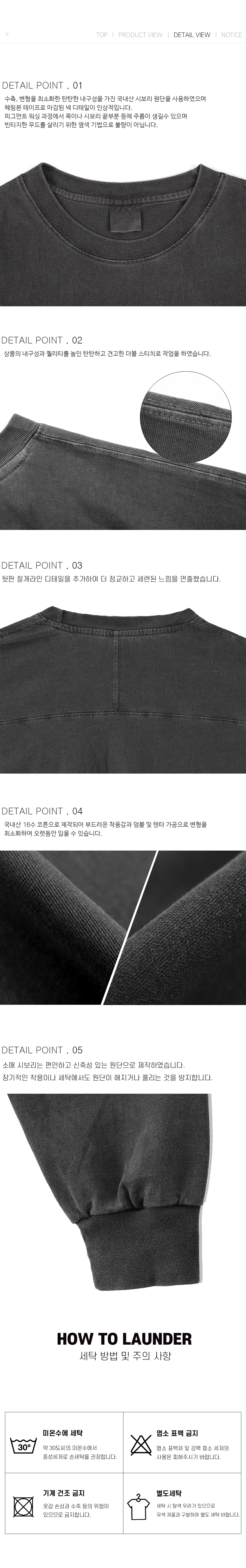 DTF 어프레이드 피그먼트 롱 슬리브 차콜