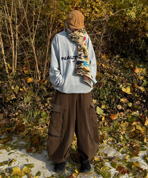 커브드 핀턱 벌룬 스웨트팬츠 그레이 YLP-602