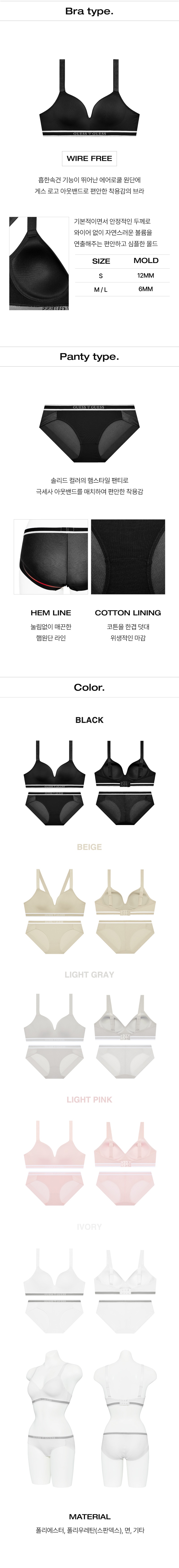 [브라1+팬티2] 에어로쿨 로고 아웃밴드 노와이어 브라팬티세트