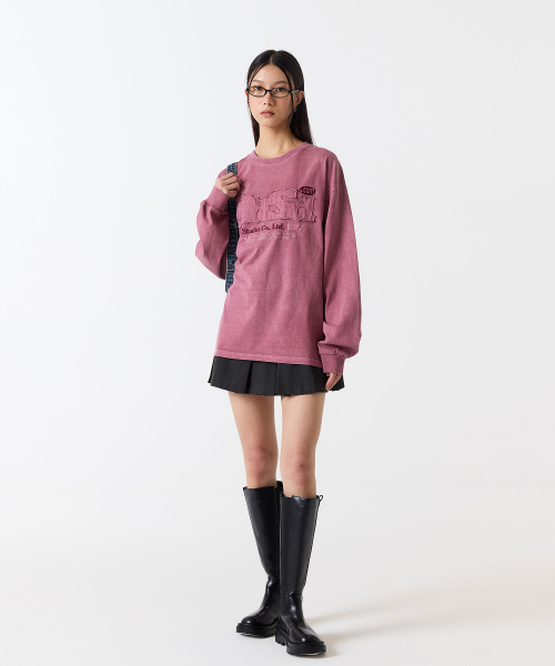 ODSD 피그먼트 데미지 롱 슬리브 - DUSTY PINK