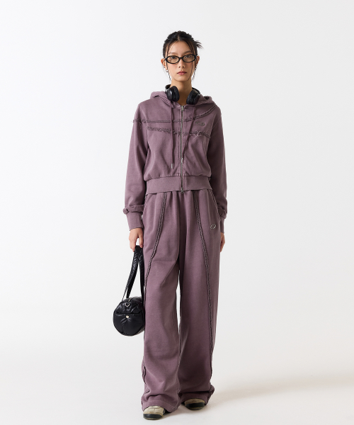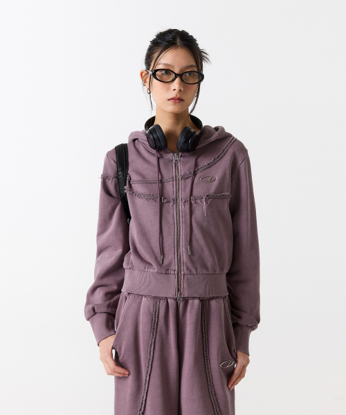 피그먼트 컷오프 후드집업 - ROSE PURPLE