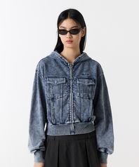 오드 시그니처 데님 스웻 크롭집업 - LIGHT BLUE