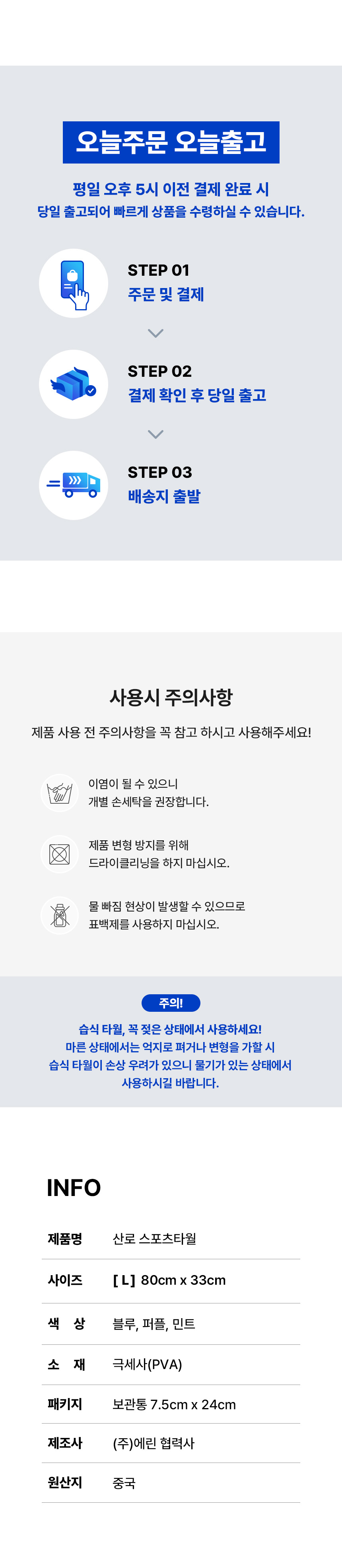 카라비너 보관 패키지 습식 스포츠타올 - 블루