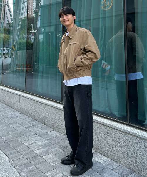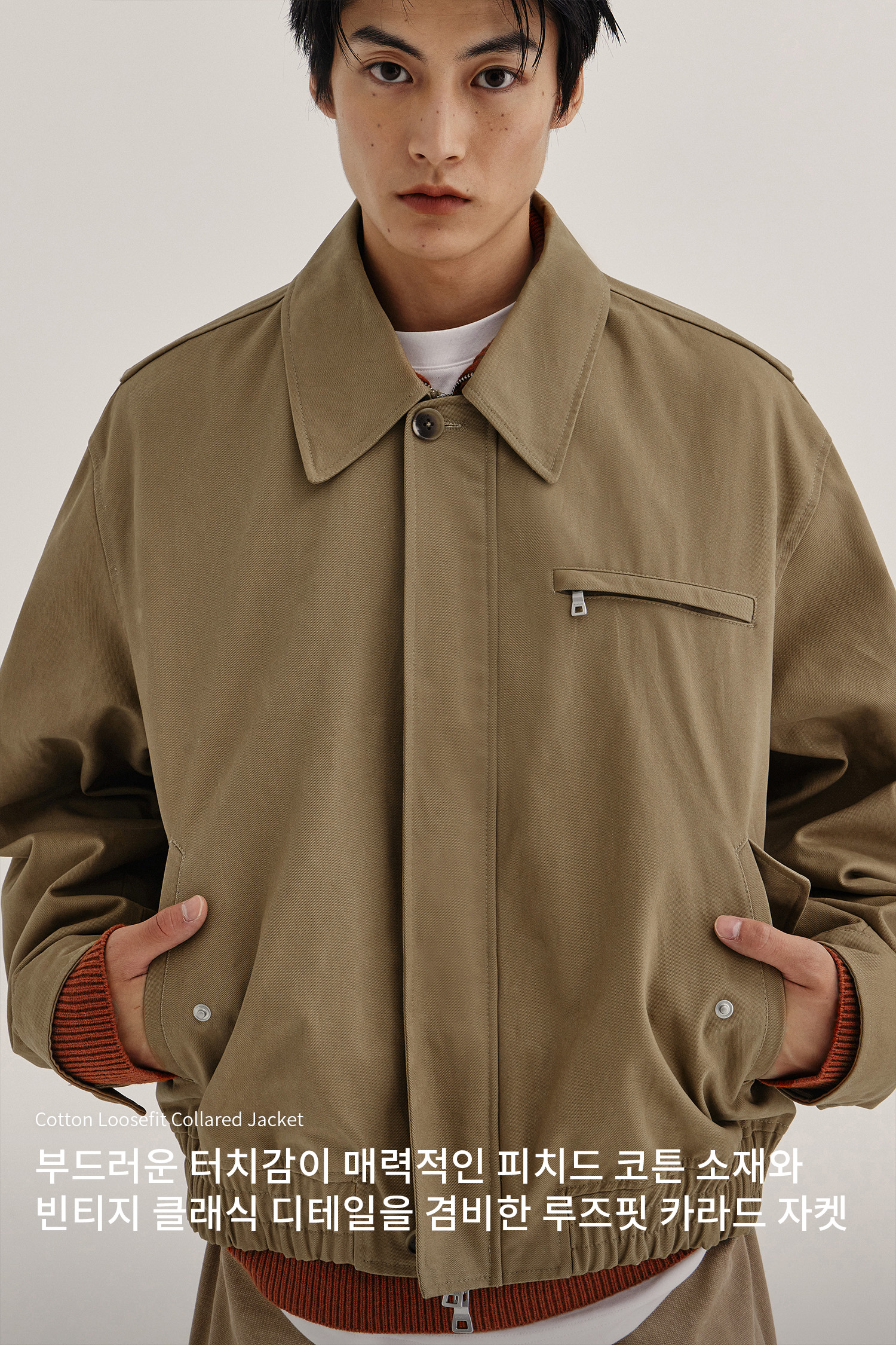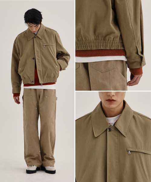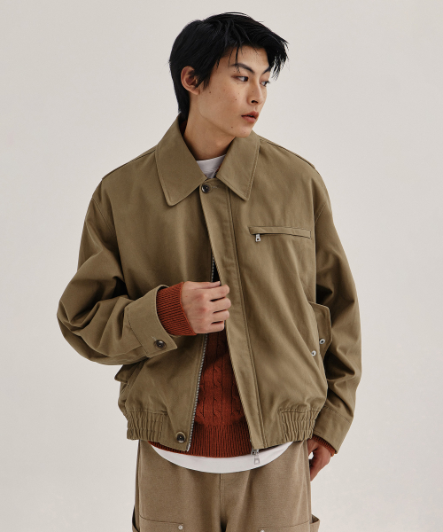루즈핏 카라드 자켓_카키 베이지