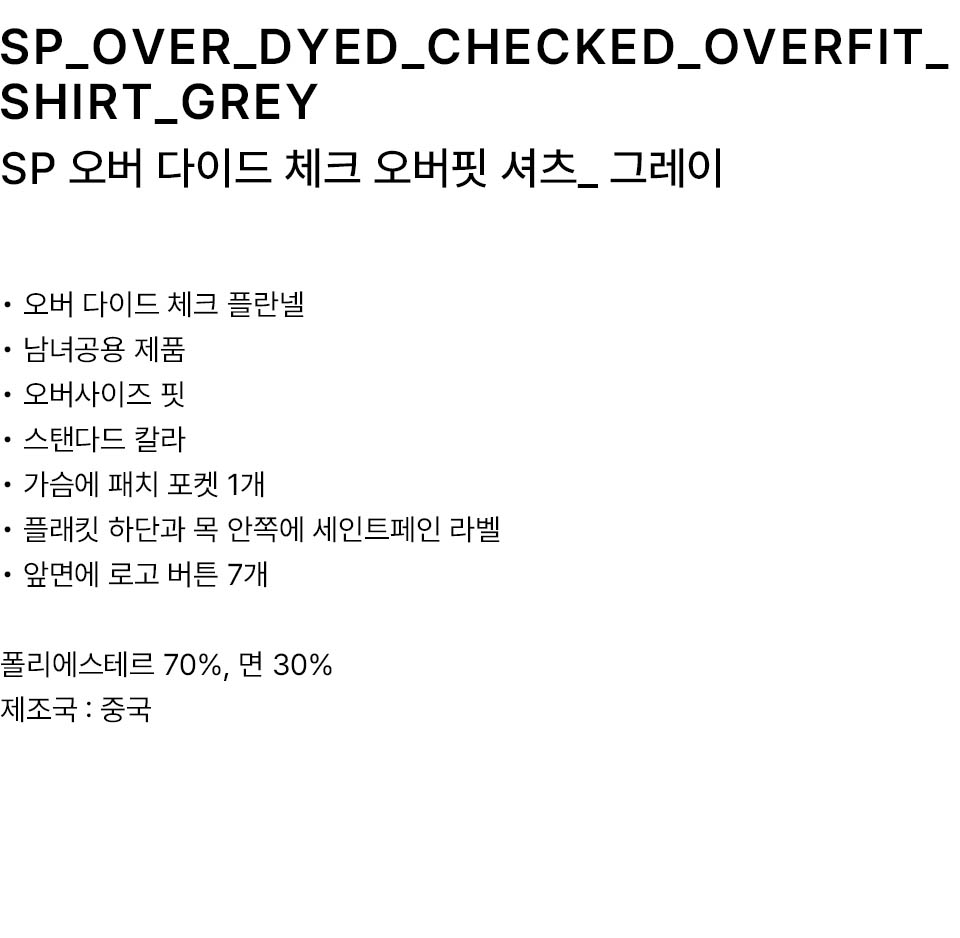 SP 오버 다이드 체크 오버핏 셔츠 그레이