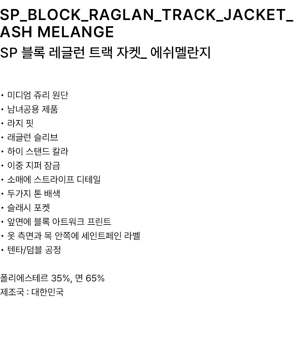 SP 블록 레글런 트랙 자켓 애쉬멜란지