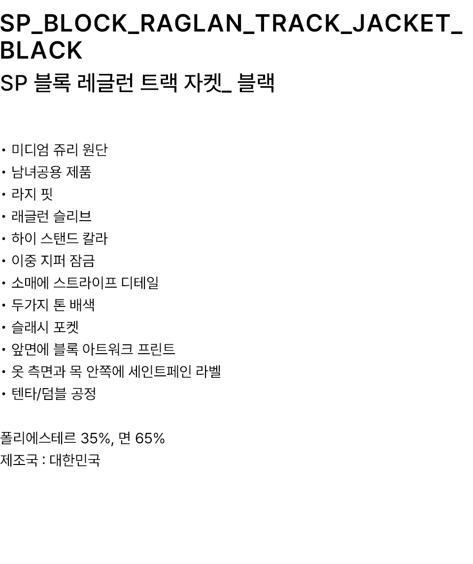 SP 블록 레글런 트랙 자켓 블랙