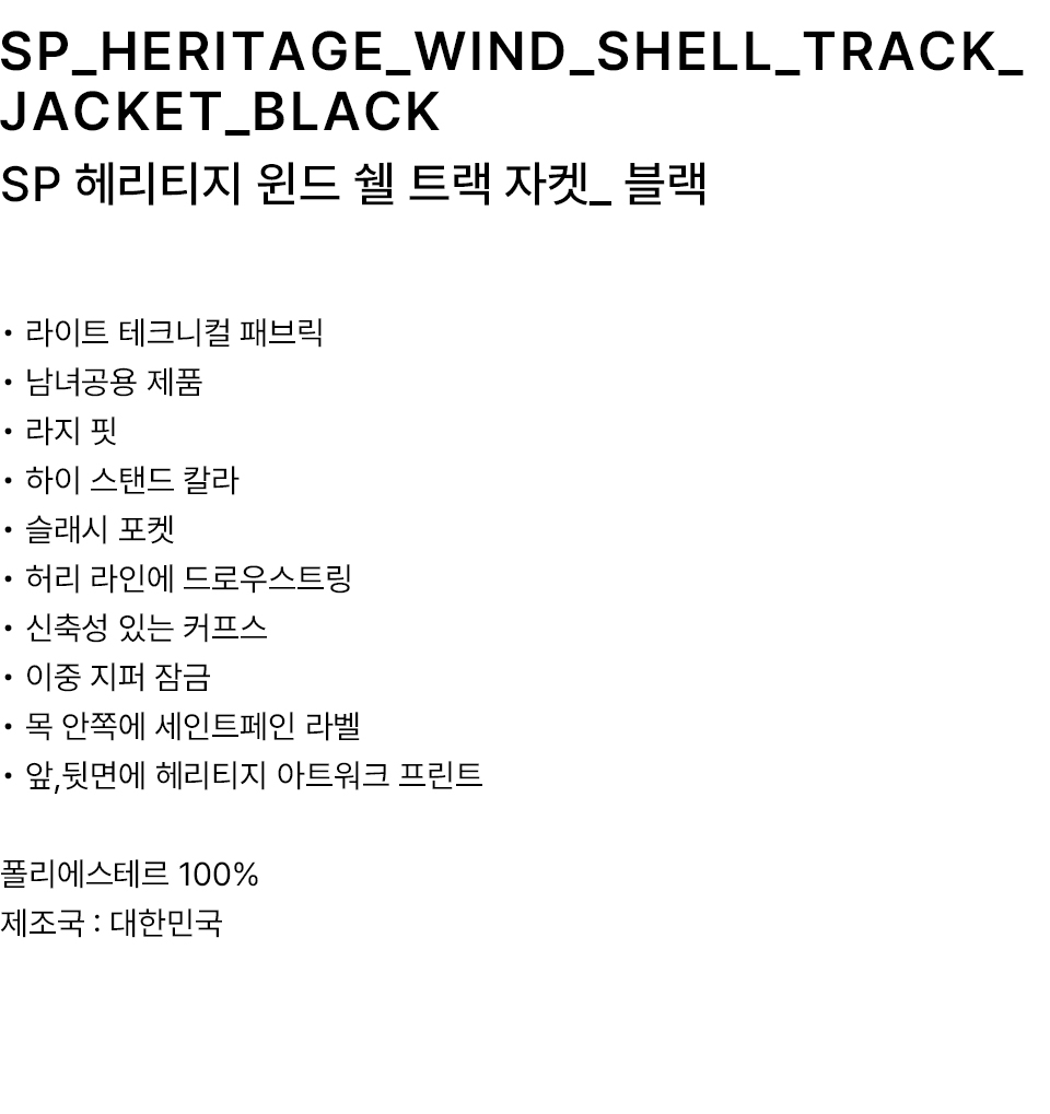 SP 헤리티지 윈드 쉘 트랙 자켓 블랙