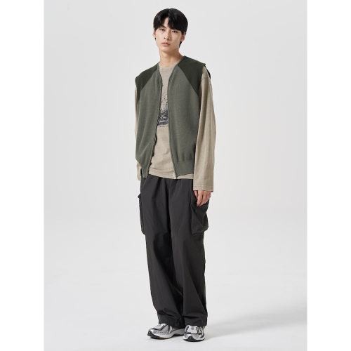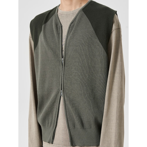집업으로 포인트를 준 니트 베스트입니다. 간절기에 입기 좋습니다. 이너와 함께 레이어드해서 다양한 스타일을 연출할 수 있습니다. 캐주얼한 아이템으로 데님이나 반바지 등과 잘 어울립니다.