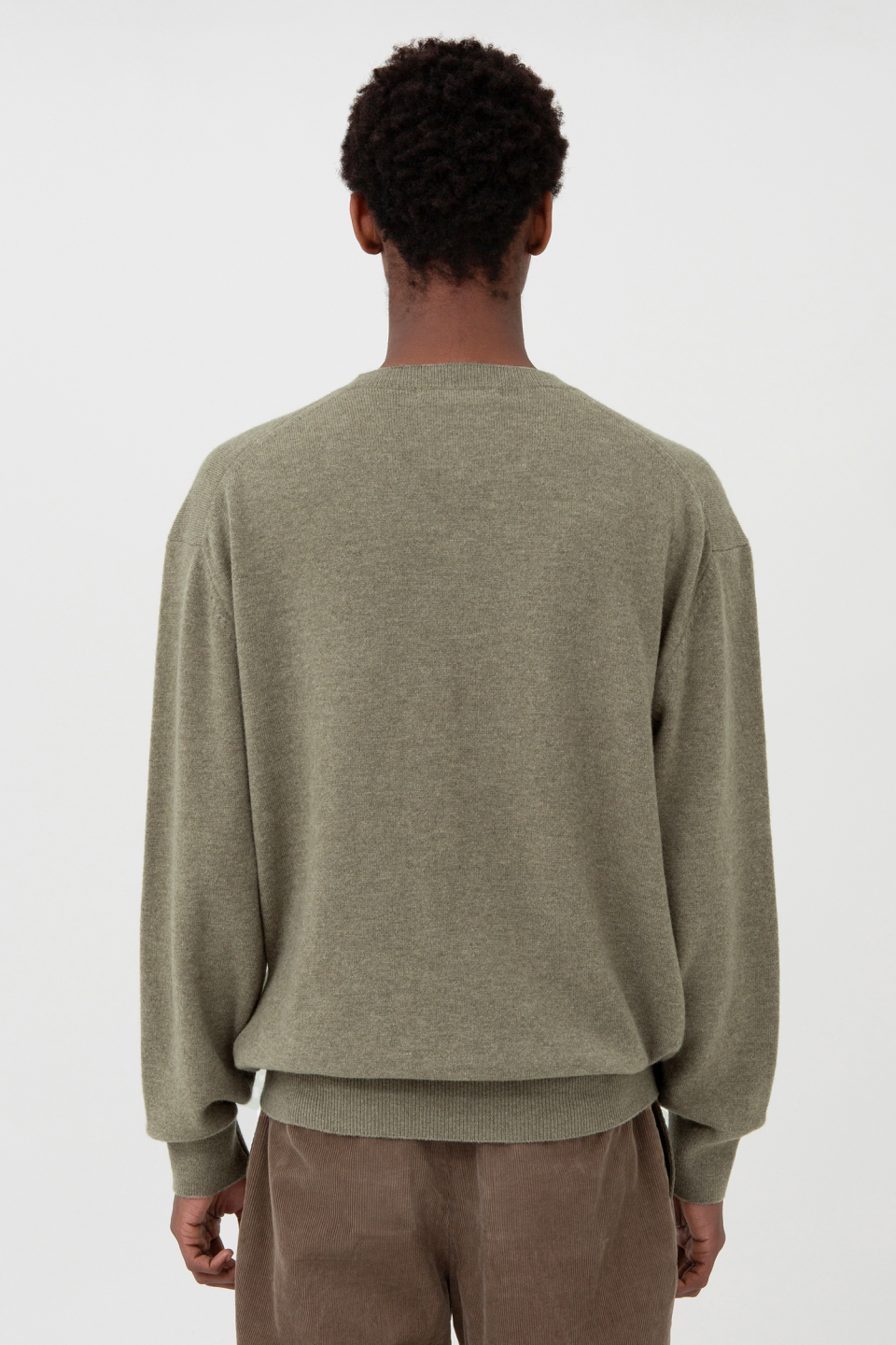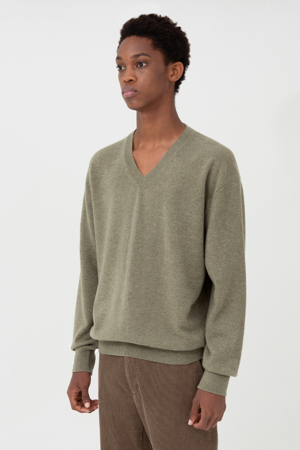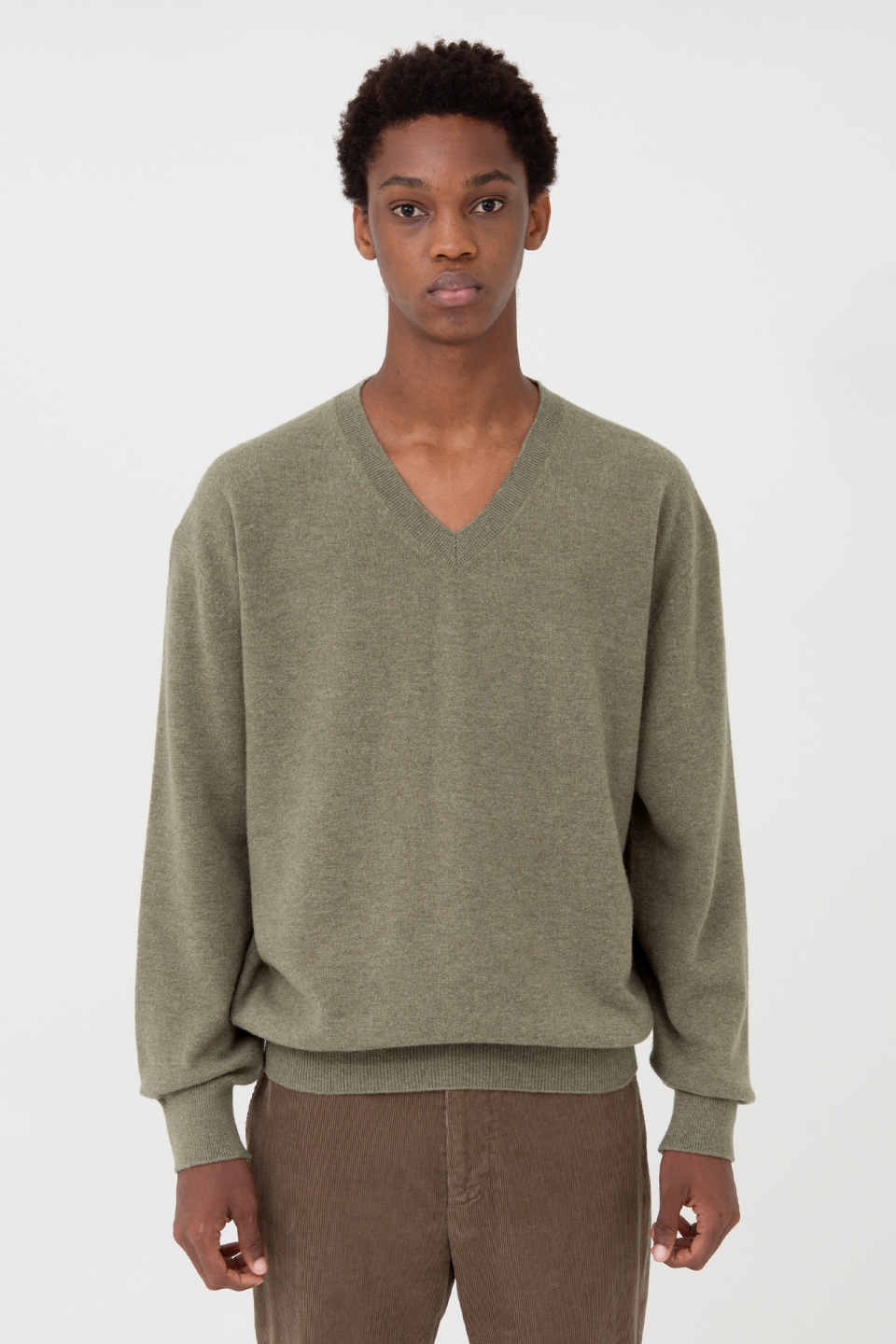 원사의 굵기가 아주 섬세하여 최고등급의 EXTRA SUPER FINE WOOL 원사를 사용하여 고급스러움을 더한 여유로운 실루엣의 V넥 니트 입니다.