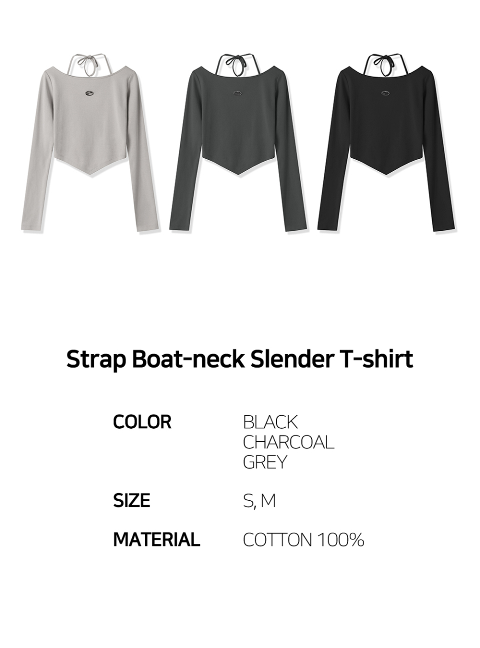 Strap Boat-neck Slender T-shirt - 3COL