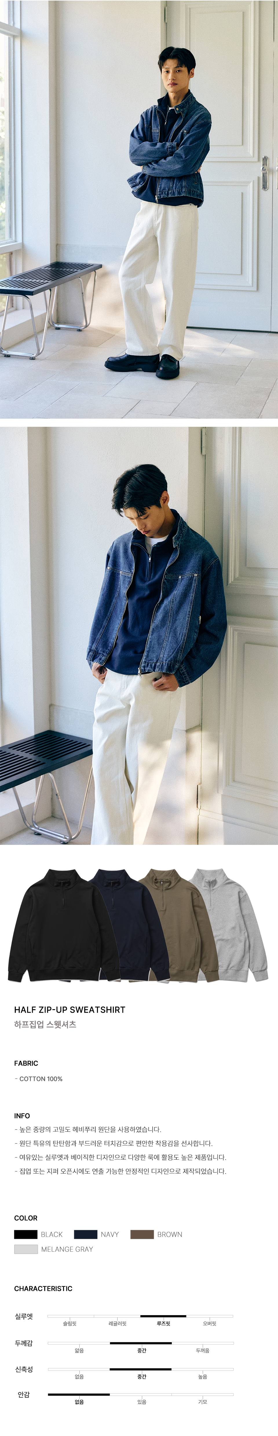 컴포터블 하프 집업 스웨트셔츠 (4color)