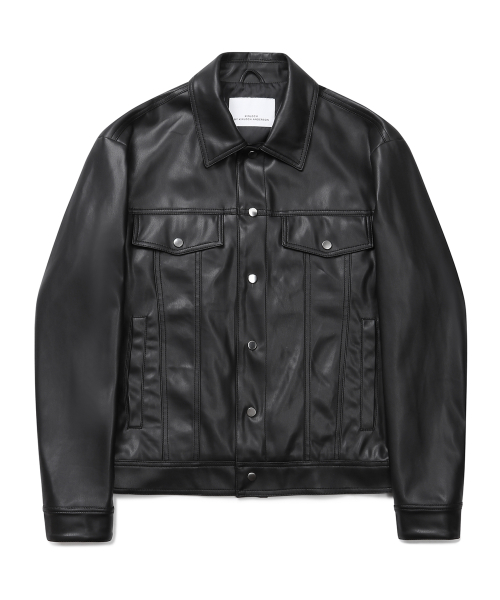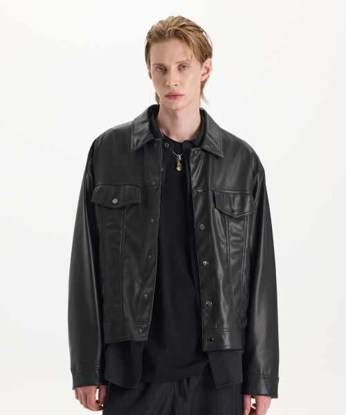 [신세틱 레더] 포켓 트러커 자켓 (블랙)