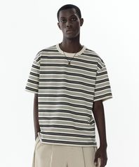 스트라이프 반팔 티셔츠 (카키)
