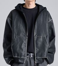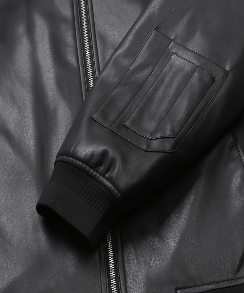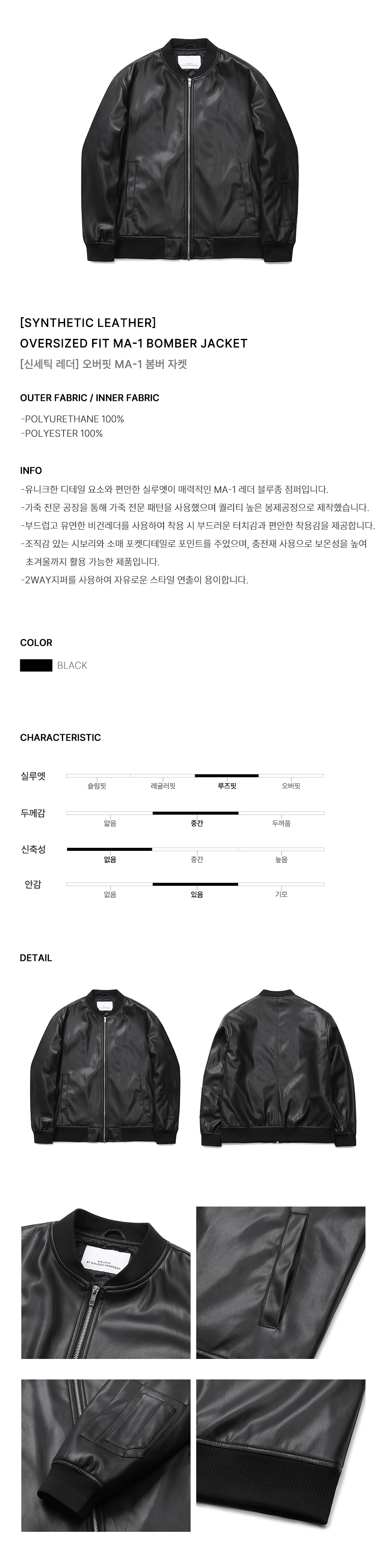 [신세틱 레더] 오버핏 MA-1 봄버 자켓 (블랙)