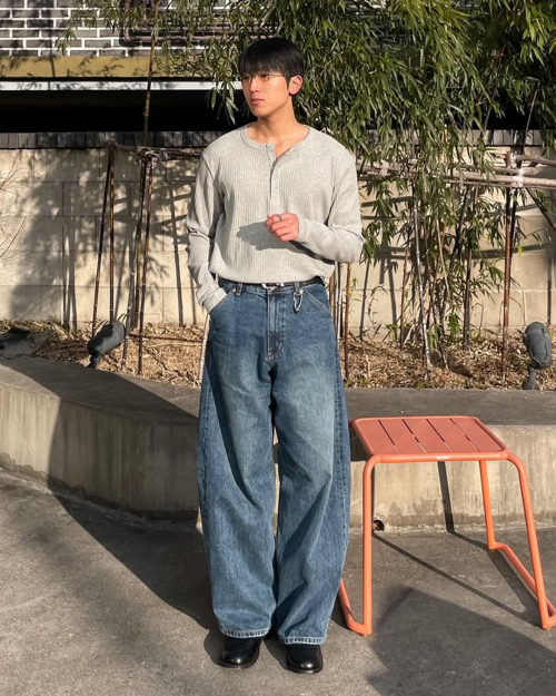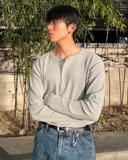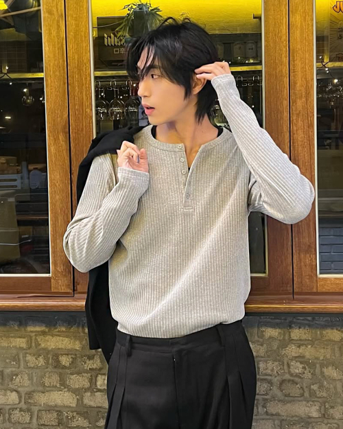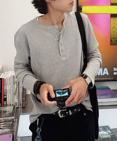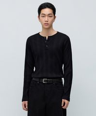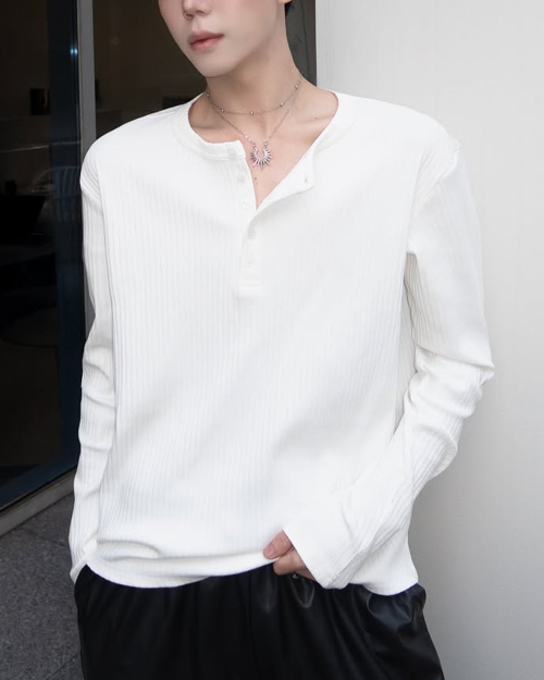 멀티 리브드 헨리 넥 긴소매 티셔츠 [블랙]
