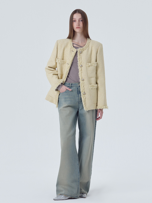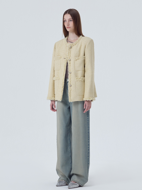 Fringe Pocket Tweed Jacket, Cream Yellow